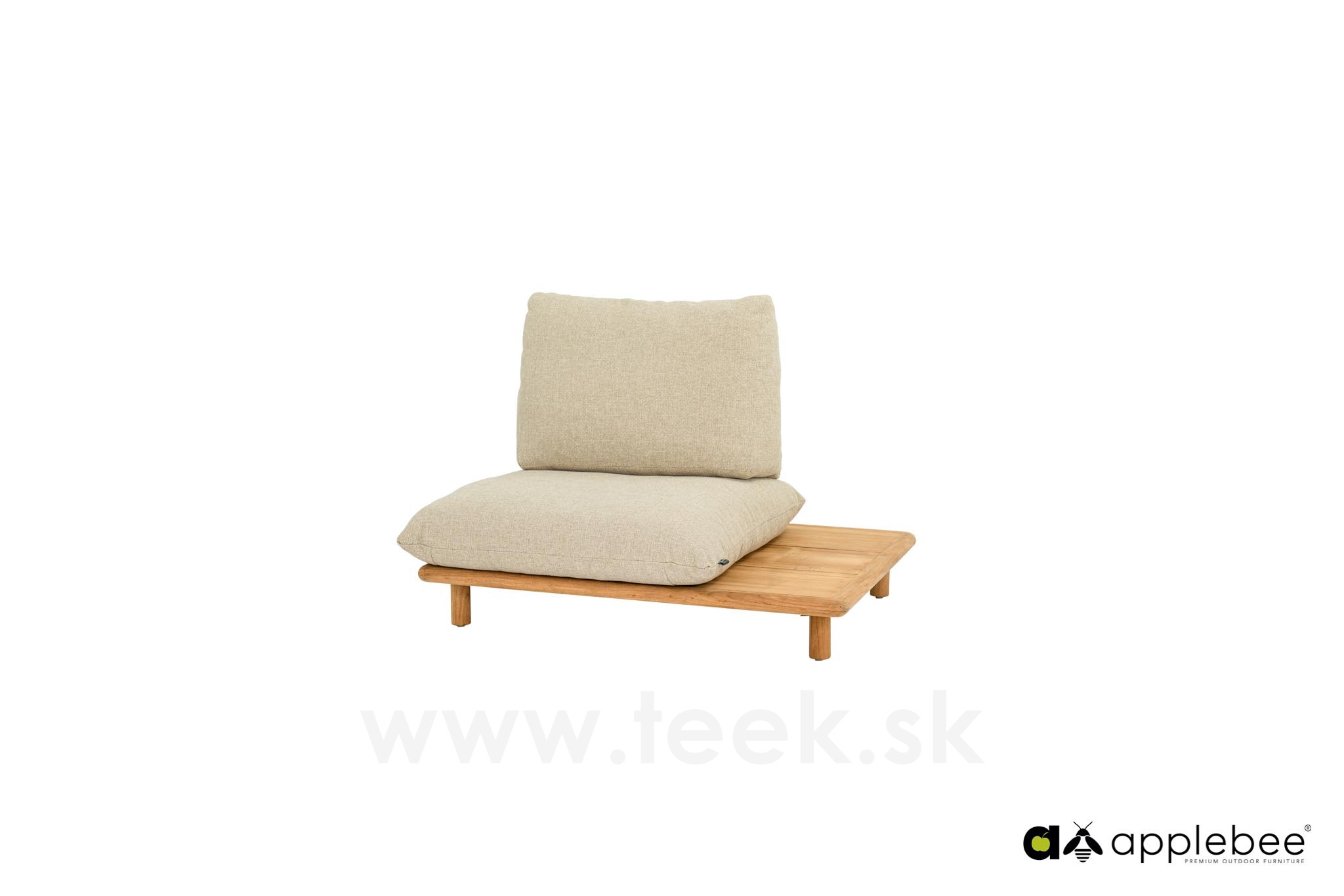 1-sedačka s odkladacím stolíkom na ľavej strane Sling, Apple Bee, 108x85x67 cm, rám teak prírodný, pás Ecru, vankúše na sedenie vonkajšia tkanina Cotton Flower