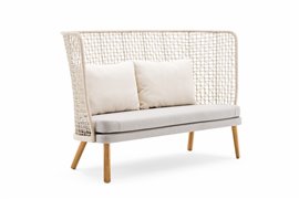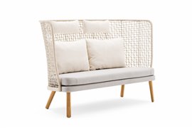 Pohovka 2-sed s vysokou zádovou opěrkou Emma, Varaschin, 160x83x109 cm, nohy iroko, výplet lanko, sedák, 2 opěrné polštáře a 2 podhlavníky venkovní látka kat. B, barvy dle vzorní