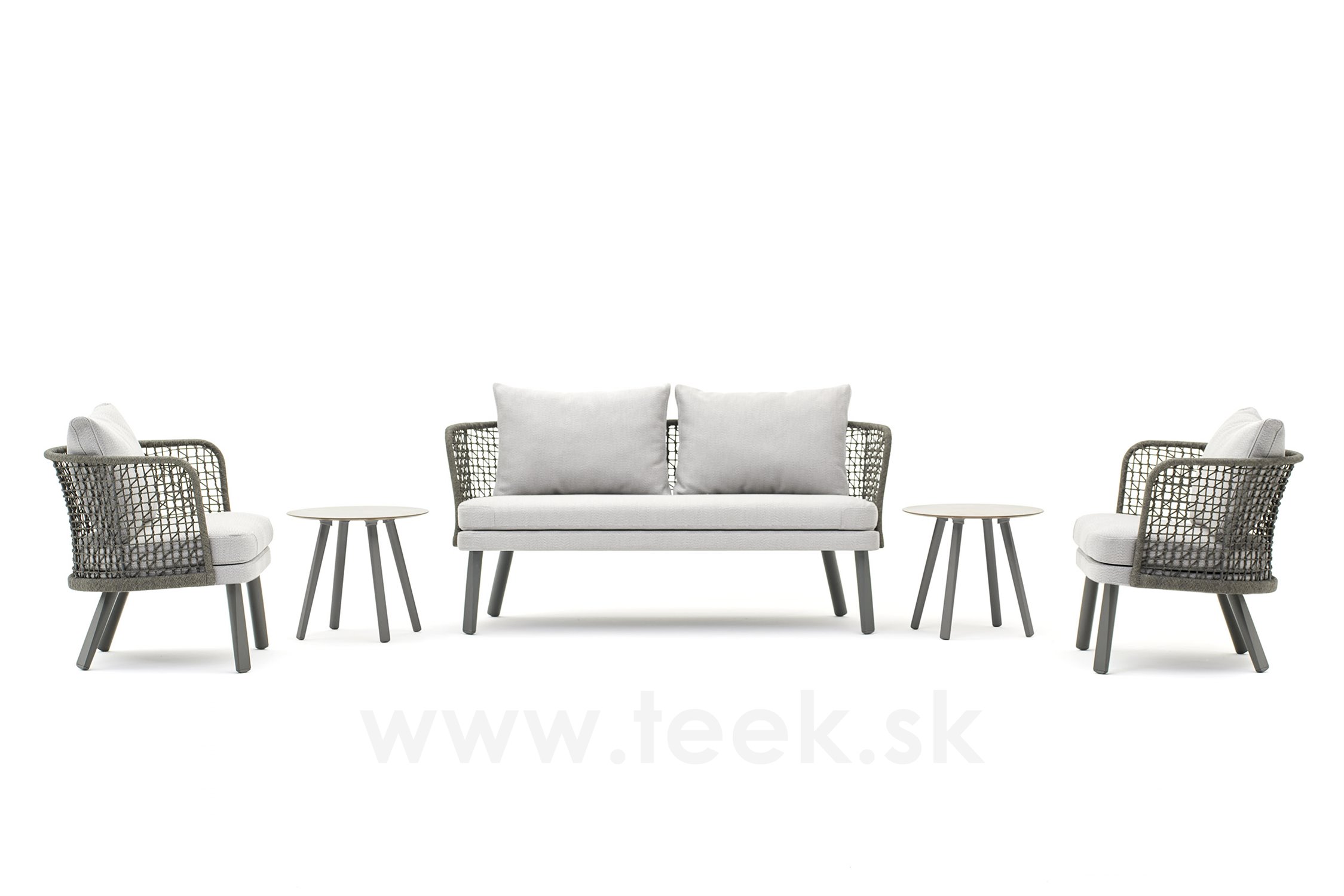 Pohovka 2-sed Emma, Varaschin, 157x73x81 cm, nohy hliník, výplet lanko, sedák a 2 opěrné polštáře venkovní látka kat. C, barvy dle vzorníku