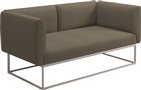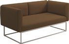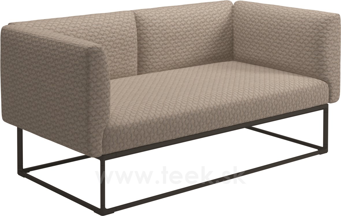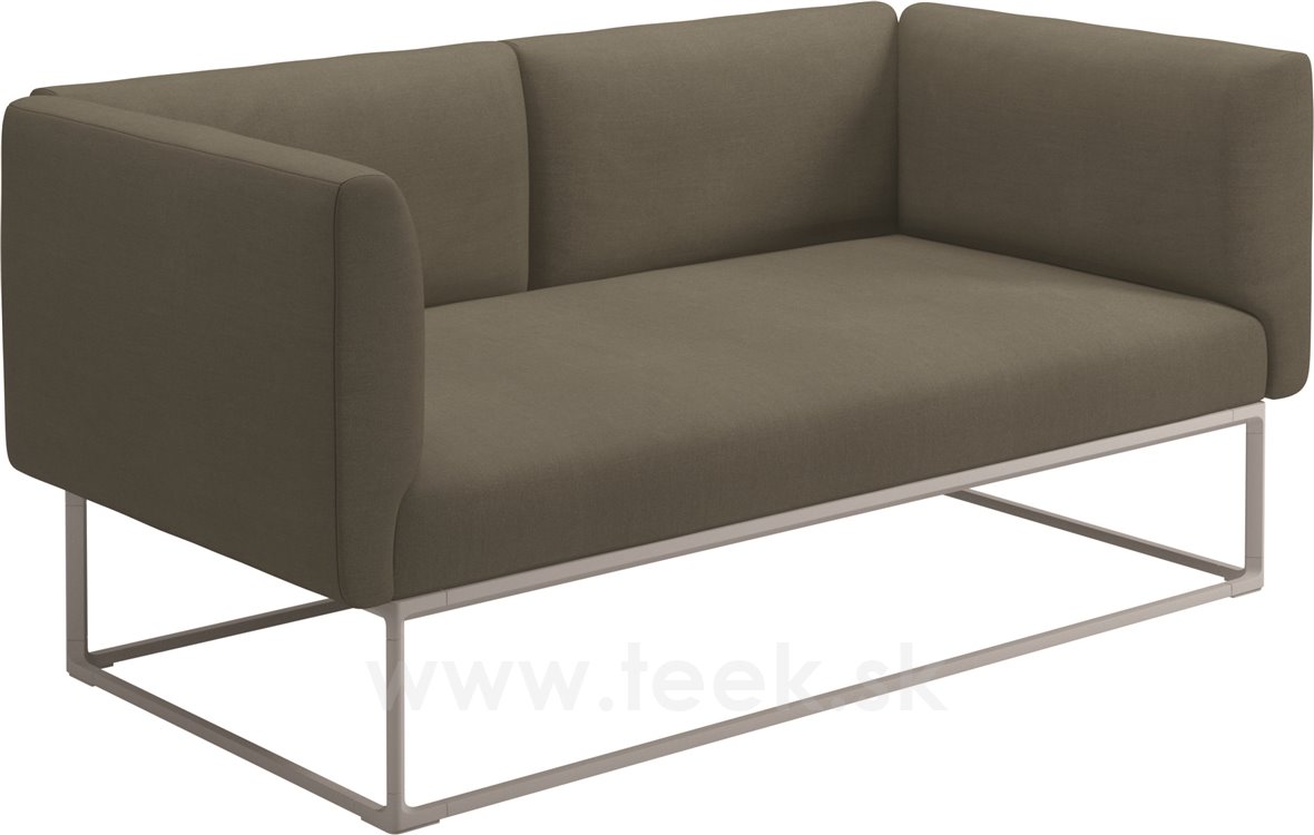 Zahradní polstrovaná 2-místná venkovní pohovka Maya značky Gloster. Rám pohovky je z lakovaného hliníku, polstrování je z venkovních odolných látek. Výplně jsou pro celoroční použití.