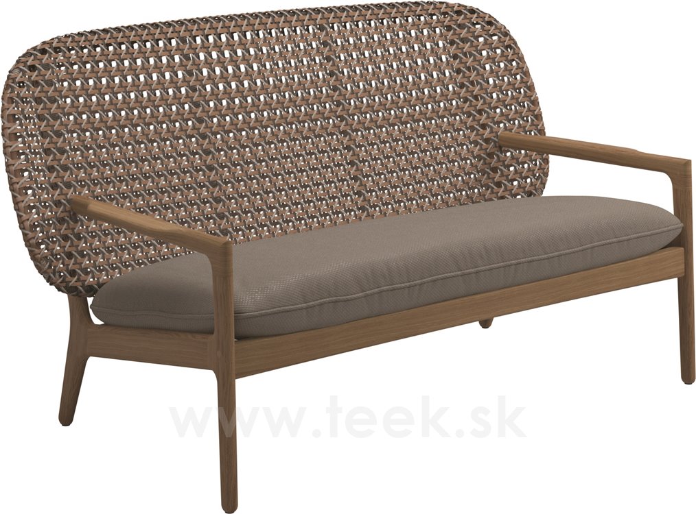 Venkovní pohovka/sofa Kay, Gloster, 156,5x84,5x83,5 cm, rám teak, výplet umělý ratan barva Brindle, sedák venkovní látka kat. B barva dle vzorníku