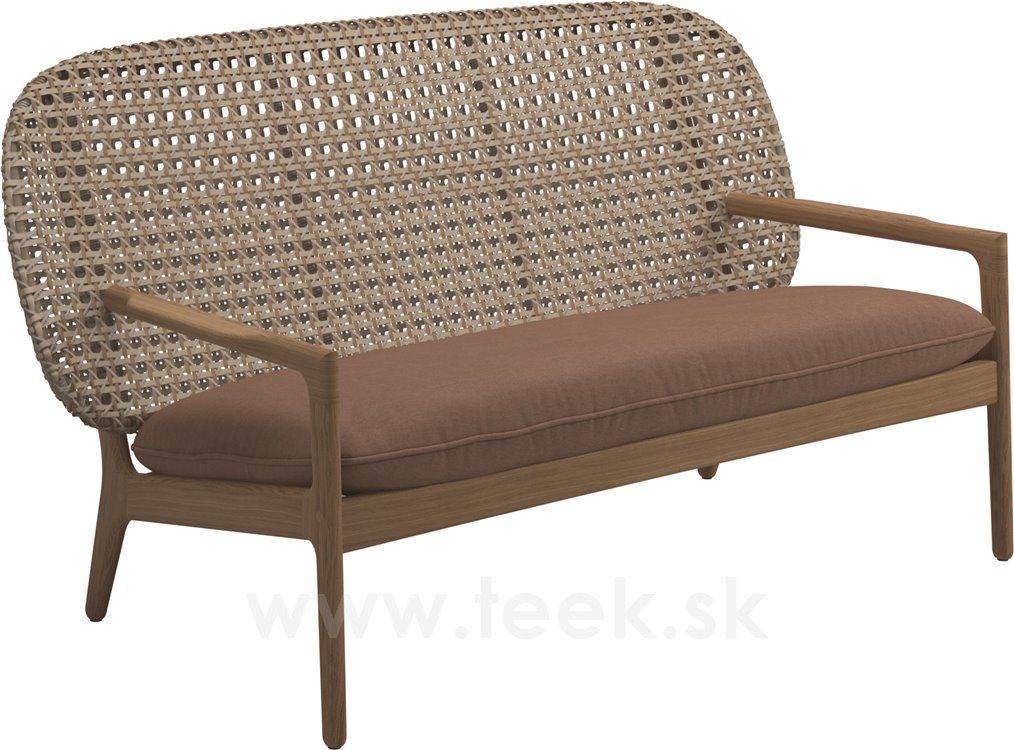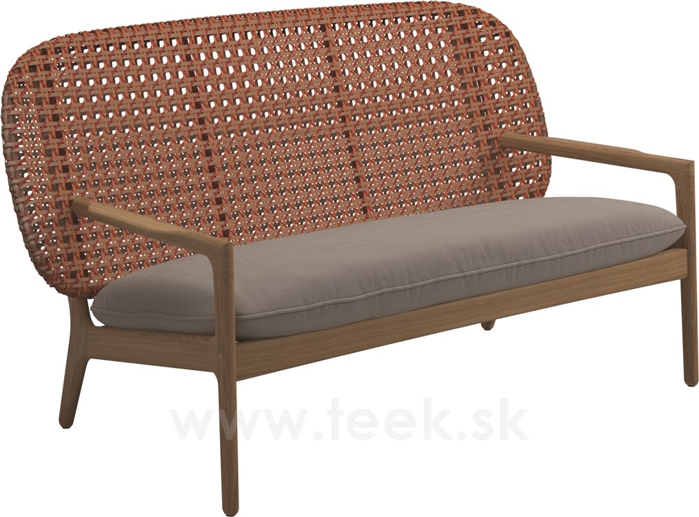 Venkovní pohovka/sofa Kay, Gloster, 156,5x84,5x83,5 cm, rám teak, výplet umělý ratan barva Copper, sedák venkovní látka kat. C barva dle vzorníku