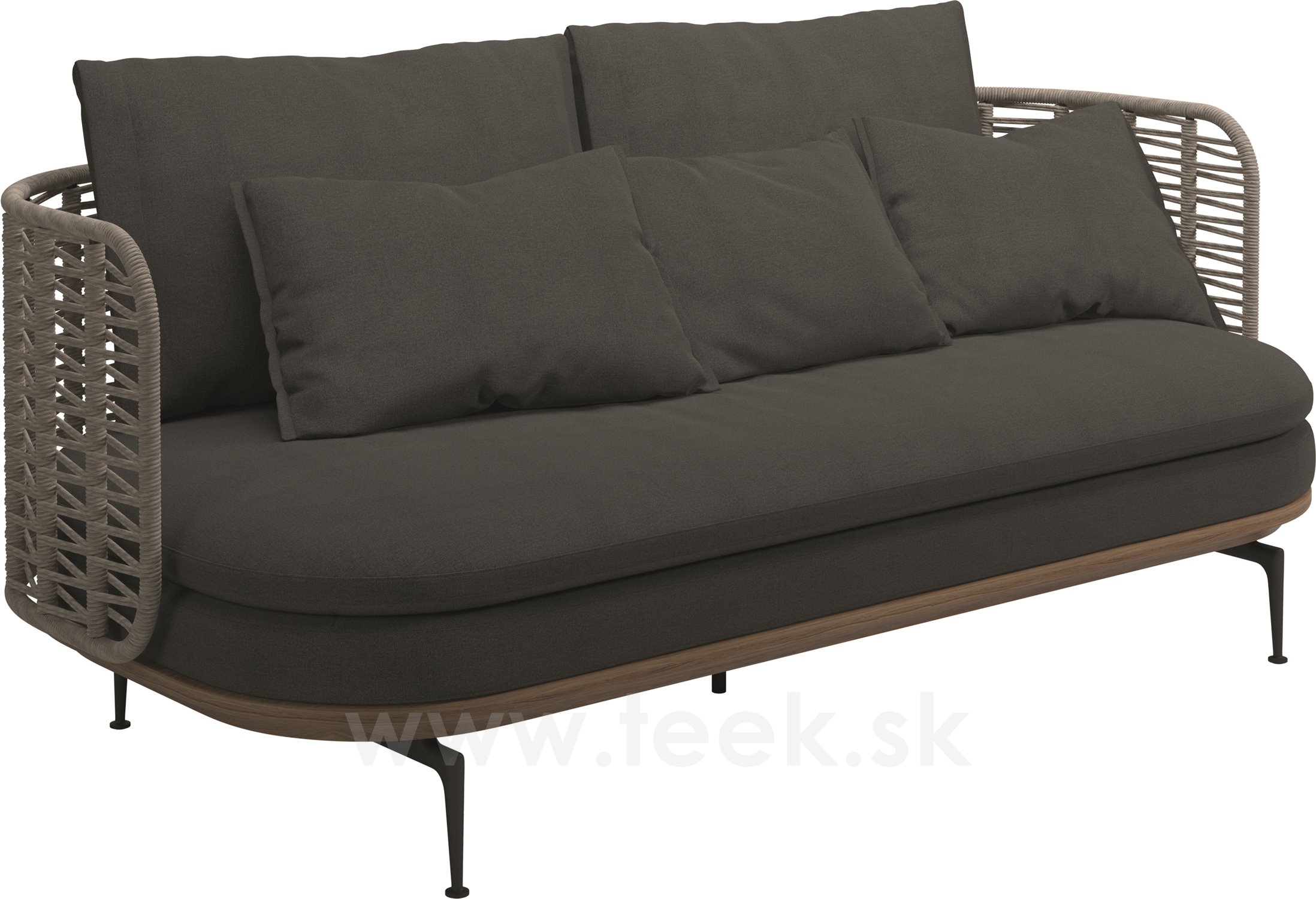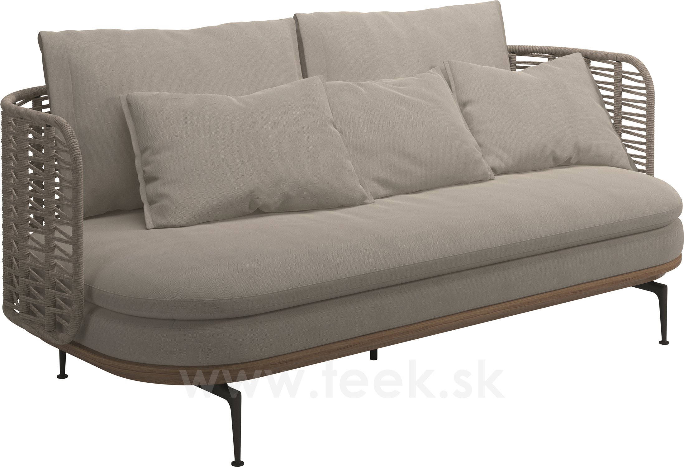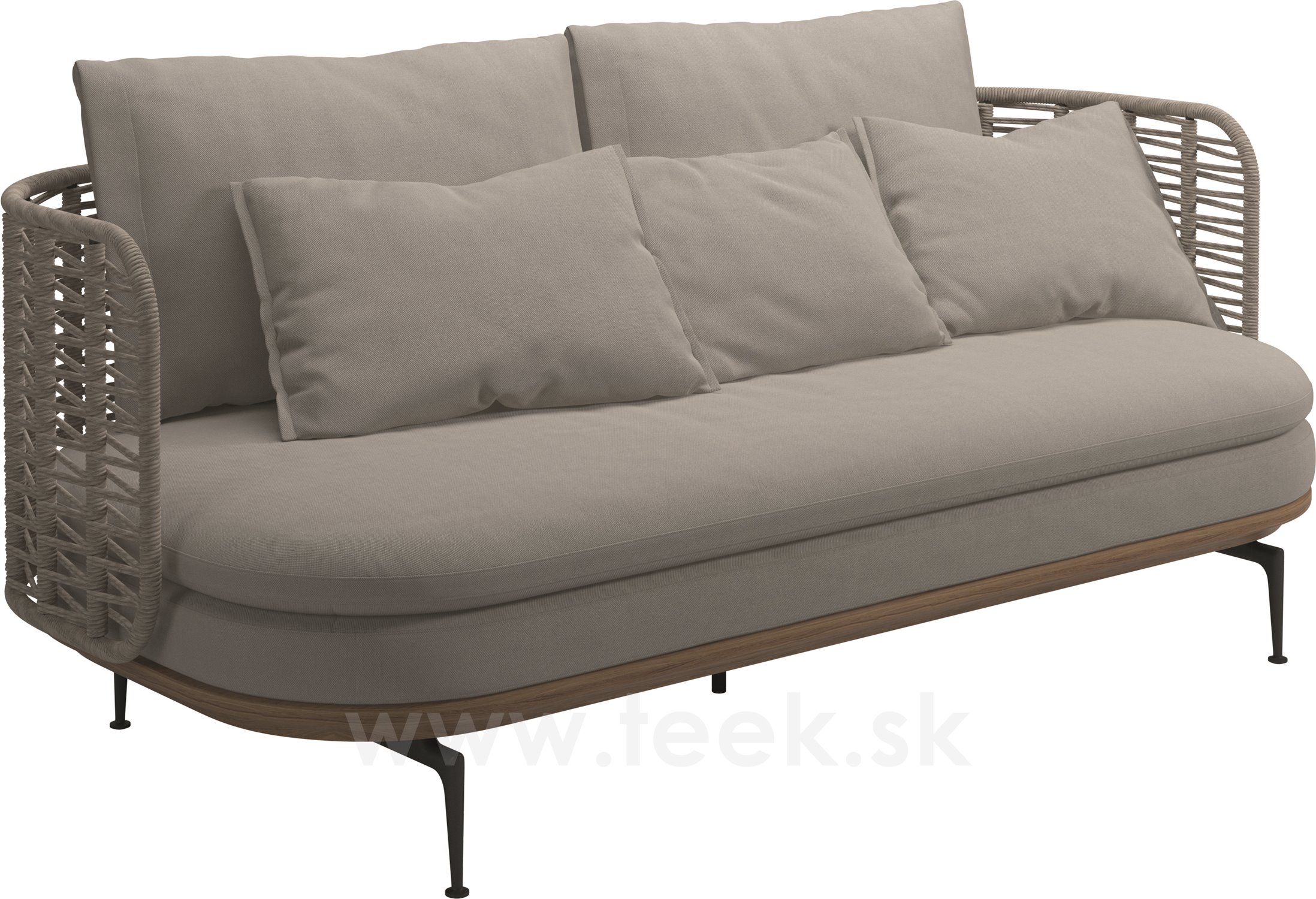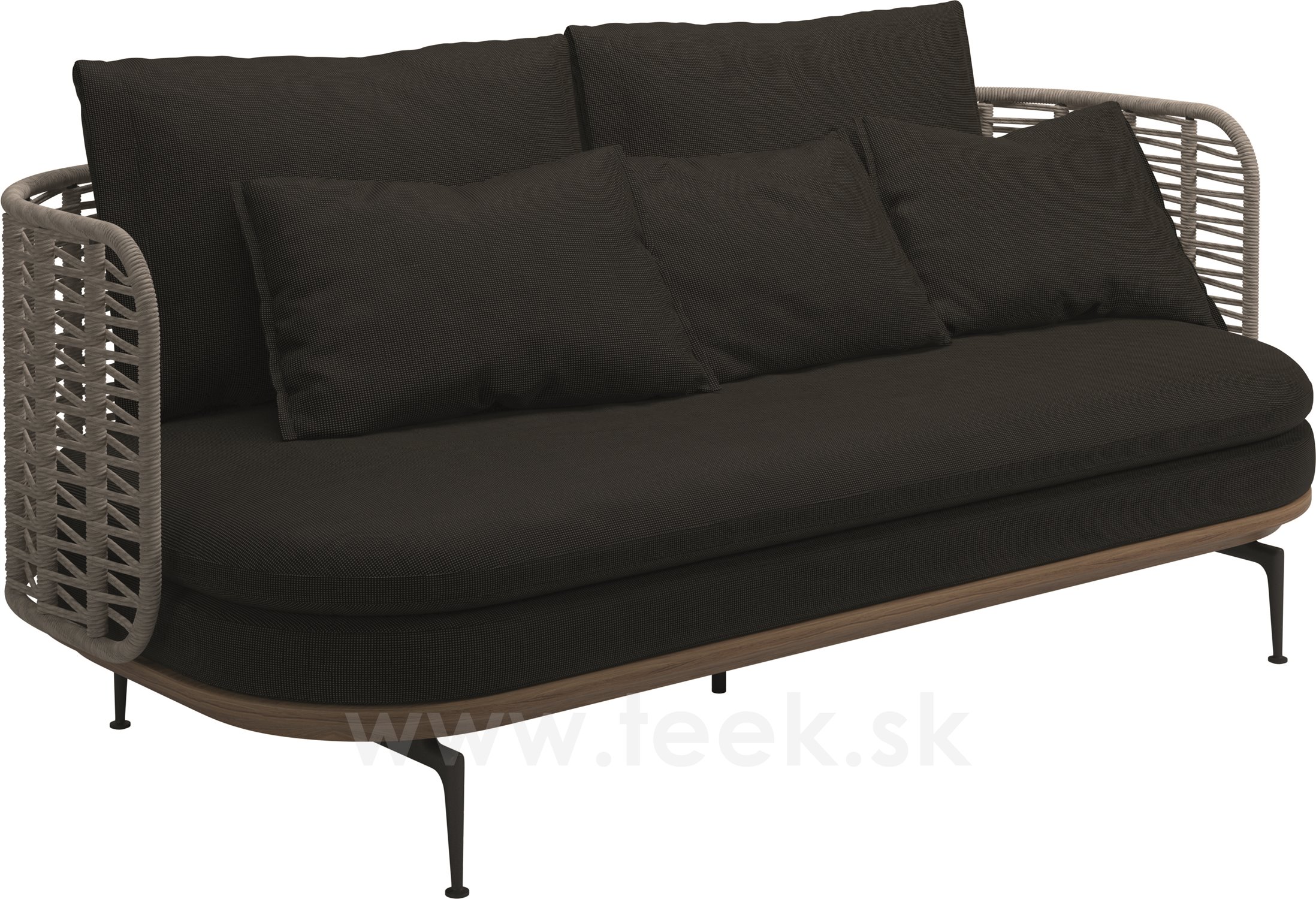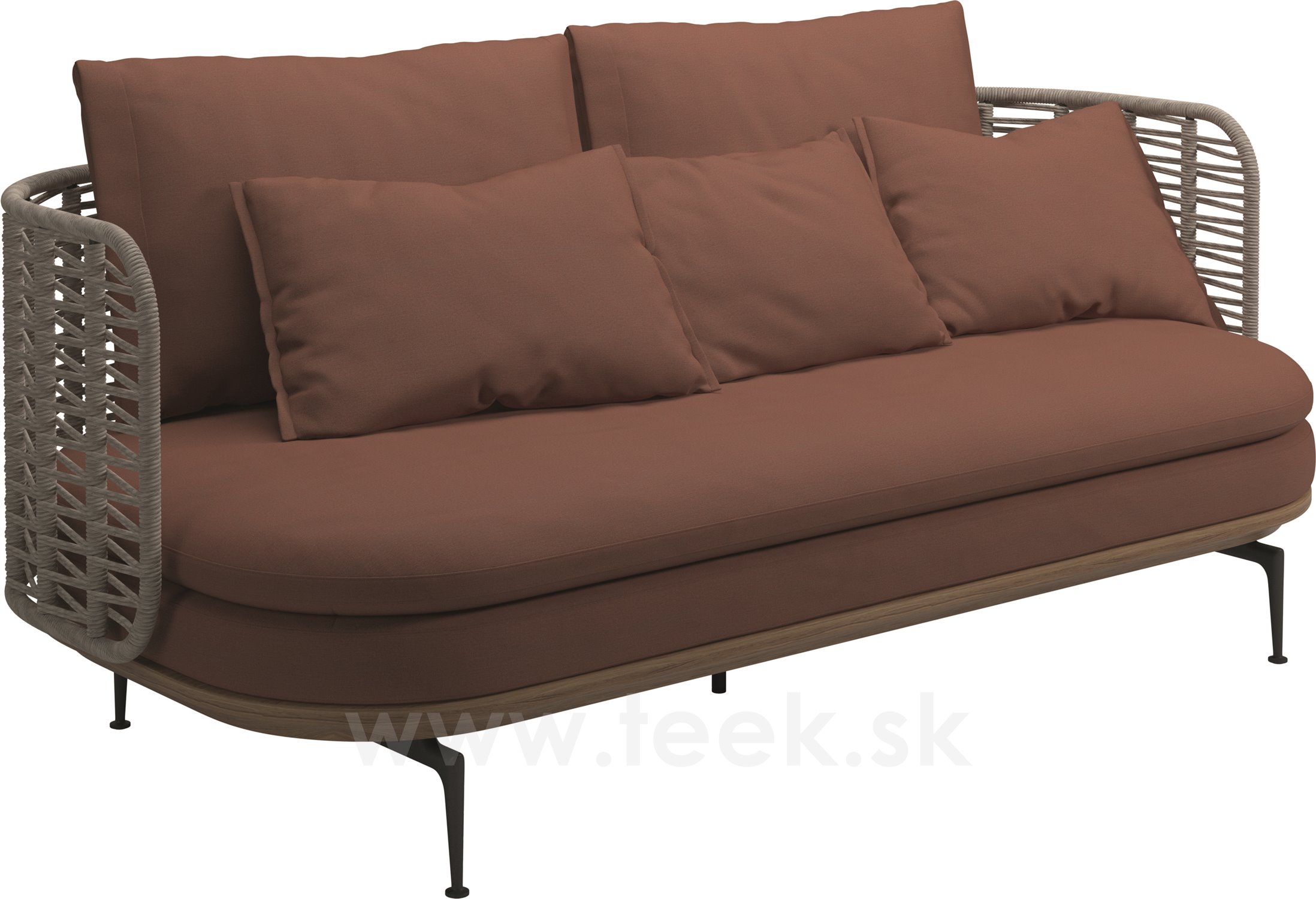 Rám: teakové drevo a lakovaný hliník, farba na mieru, oplet: umelý ratan
