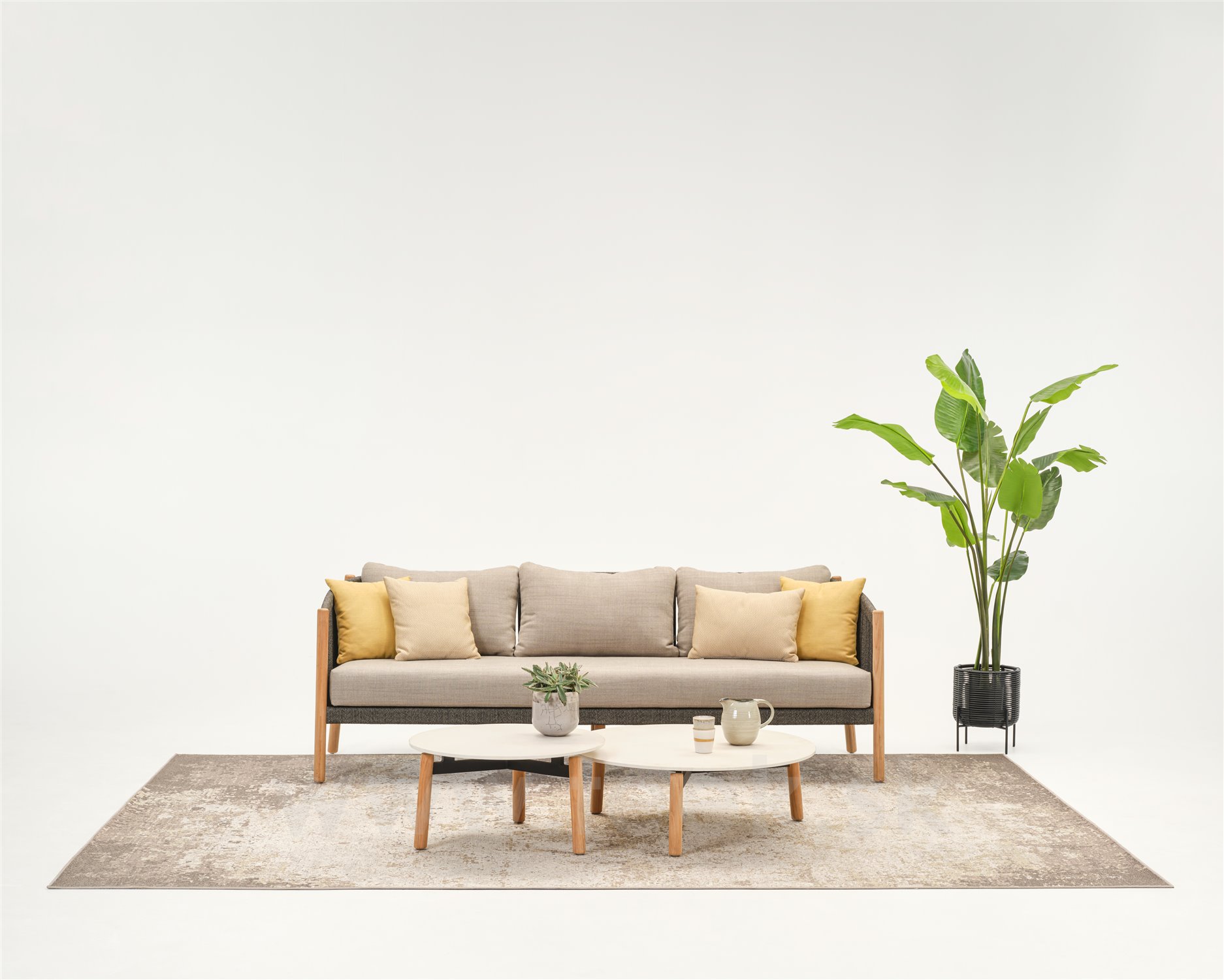 3-miestna pohovka Lento, Vincent Sheppard, 225x83x78 cm, teakový rám, antracitová šnúra, sada vankúšov na sedenie Stone