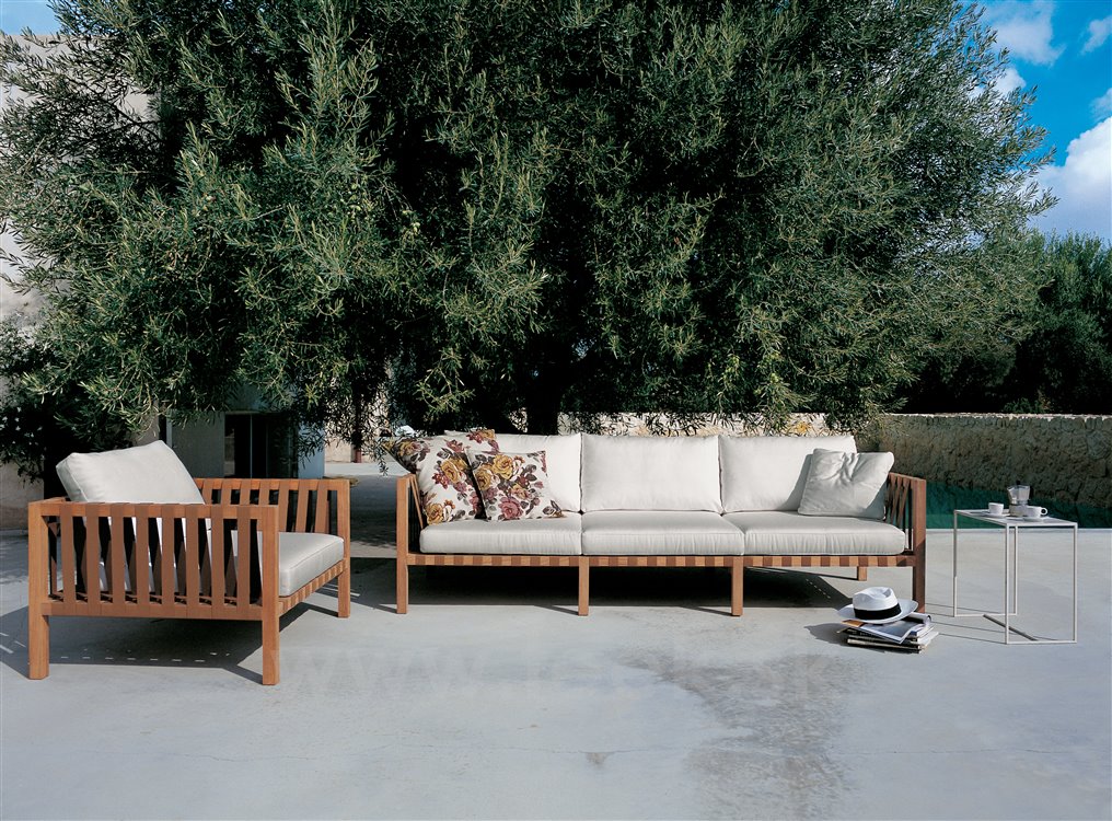 3-místá pohovka Mistral, Roda, 247x90x64 cm, rám teak, pásový výplet barva dle vzorníku, bez polstrů