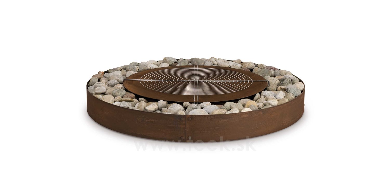 Dizajnový oceľový krb od talianskeho výrobcu s priemerom 1800 mm. Zen má okrúhly tvar a môže sa používať s roštom. Na doplnenie ohniska Zen možno použiť kamene, štrk alebo lávové kamene či piesok... Zen nie je len vonkajší krb, ale aj funkčný dizajnový objekt, ktorý sa dá osadiť do zeme.
