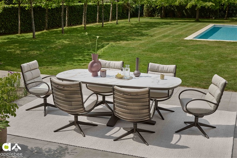 Holandská značka vonkajšieho nábytku Apple Bee je pôvodne výrobca interiérového nábytku z ratanu a od roku 1998 začala vyrábať tradičný záhradný nábytok s pridanou hodnotou. V kolekciách Apple Bee je jasne vidieť, že zakladateľ Sako Wijma pracuje s vášňou pre svoje remeslo. Dizajn je zameraný na cieľ, na funkciu a uchopiteľnosť. Apple Bee ponúka výborný pomer kvality a ceny. Najznámejšia kolekcia Cocoon je už od začiatku najviac rozpoznateľnou kolekciou tejto značky.