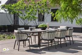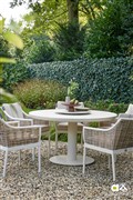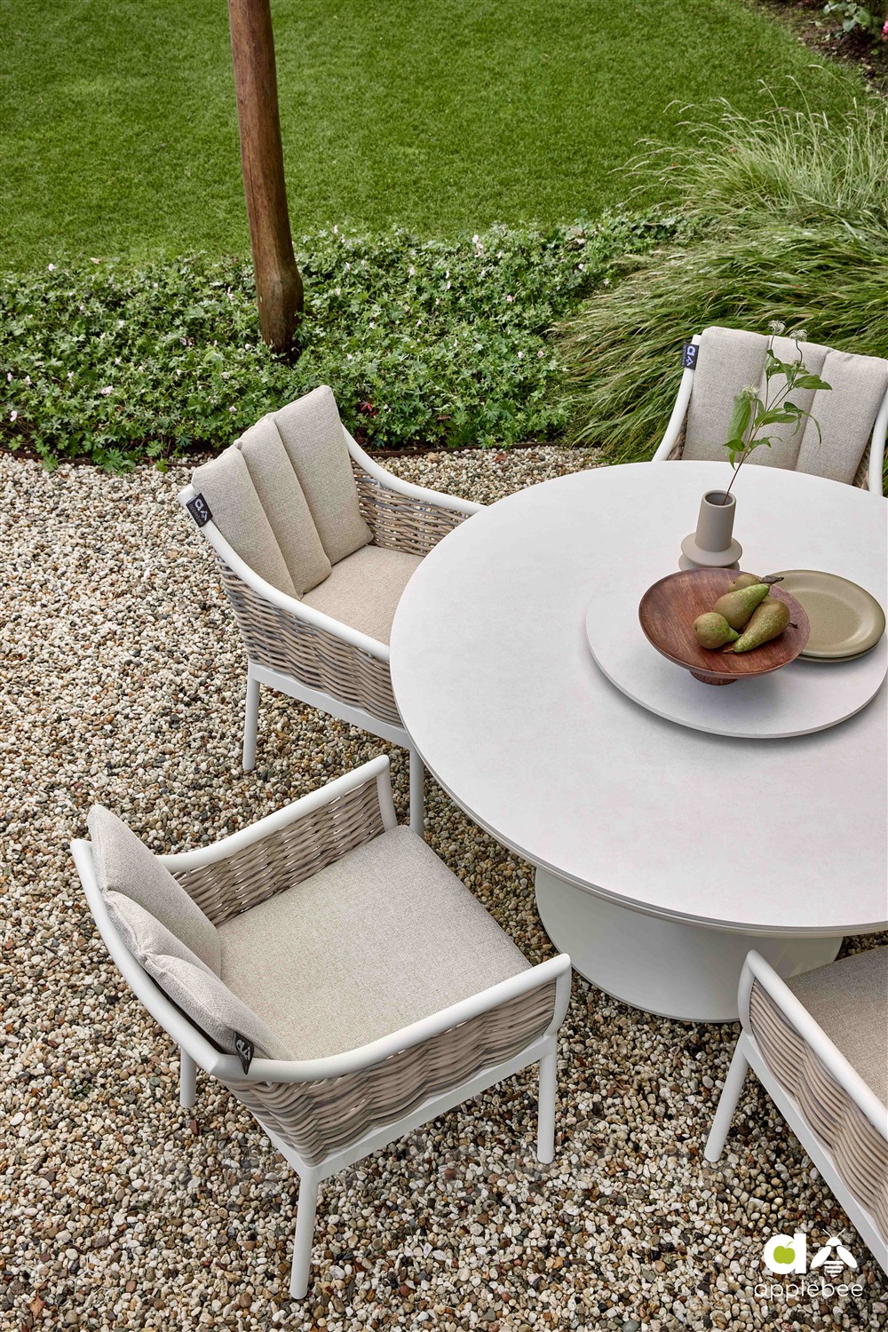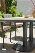 Okrúhle a oválne vonkajšie jedálenské stoly Melville s klasickou aj zníženou výškou od Apple Bee.