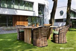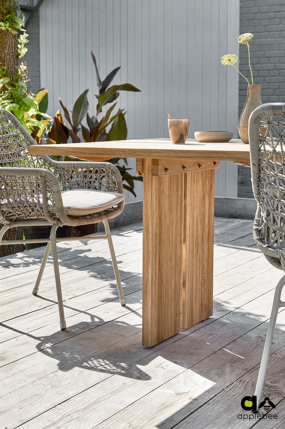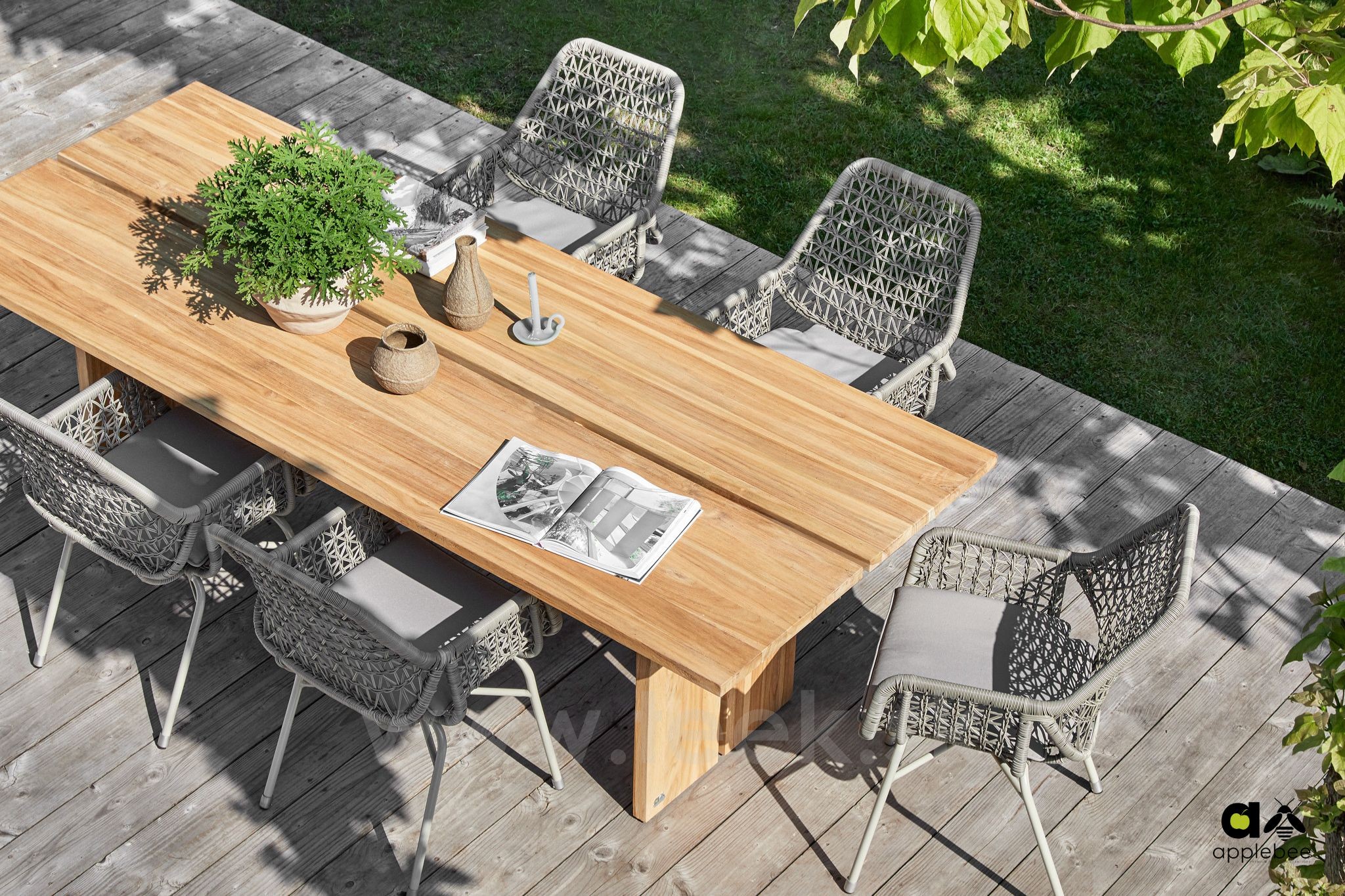 Vonkajšie jedálenské stoly z teakového dreva Joie de Vivre od značky Apple Bee.