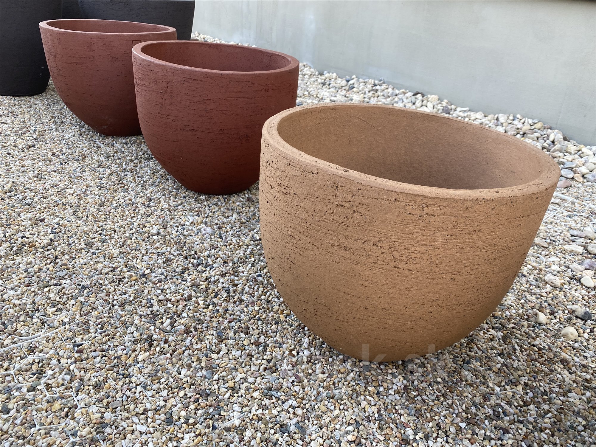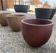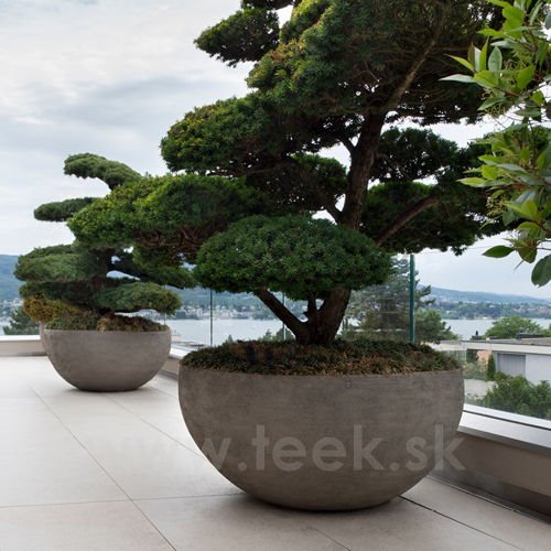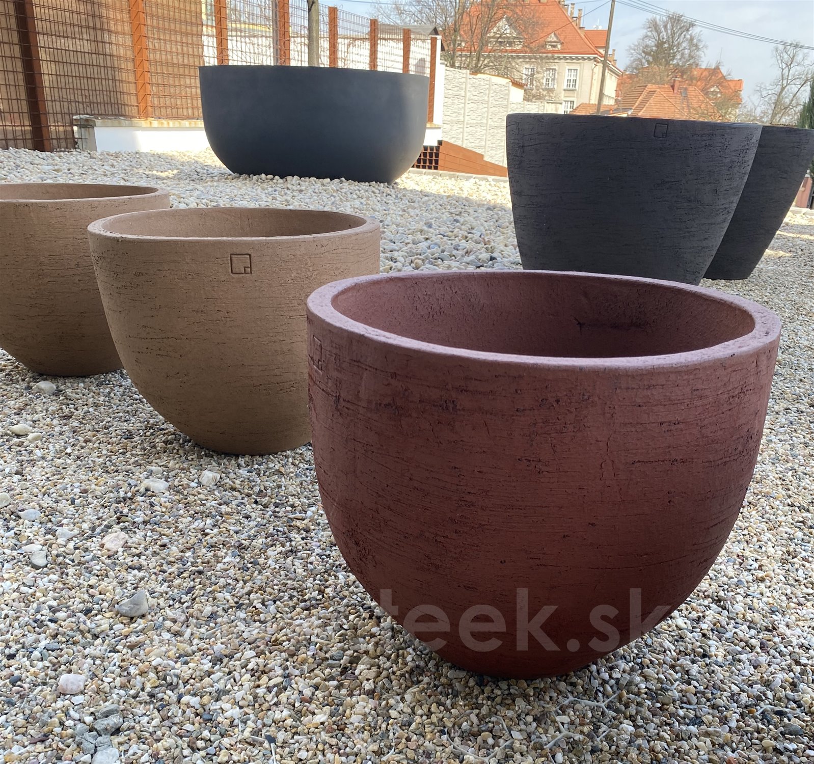 Okrúhle klasické miskovité kvetináče pre každú terasu.