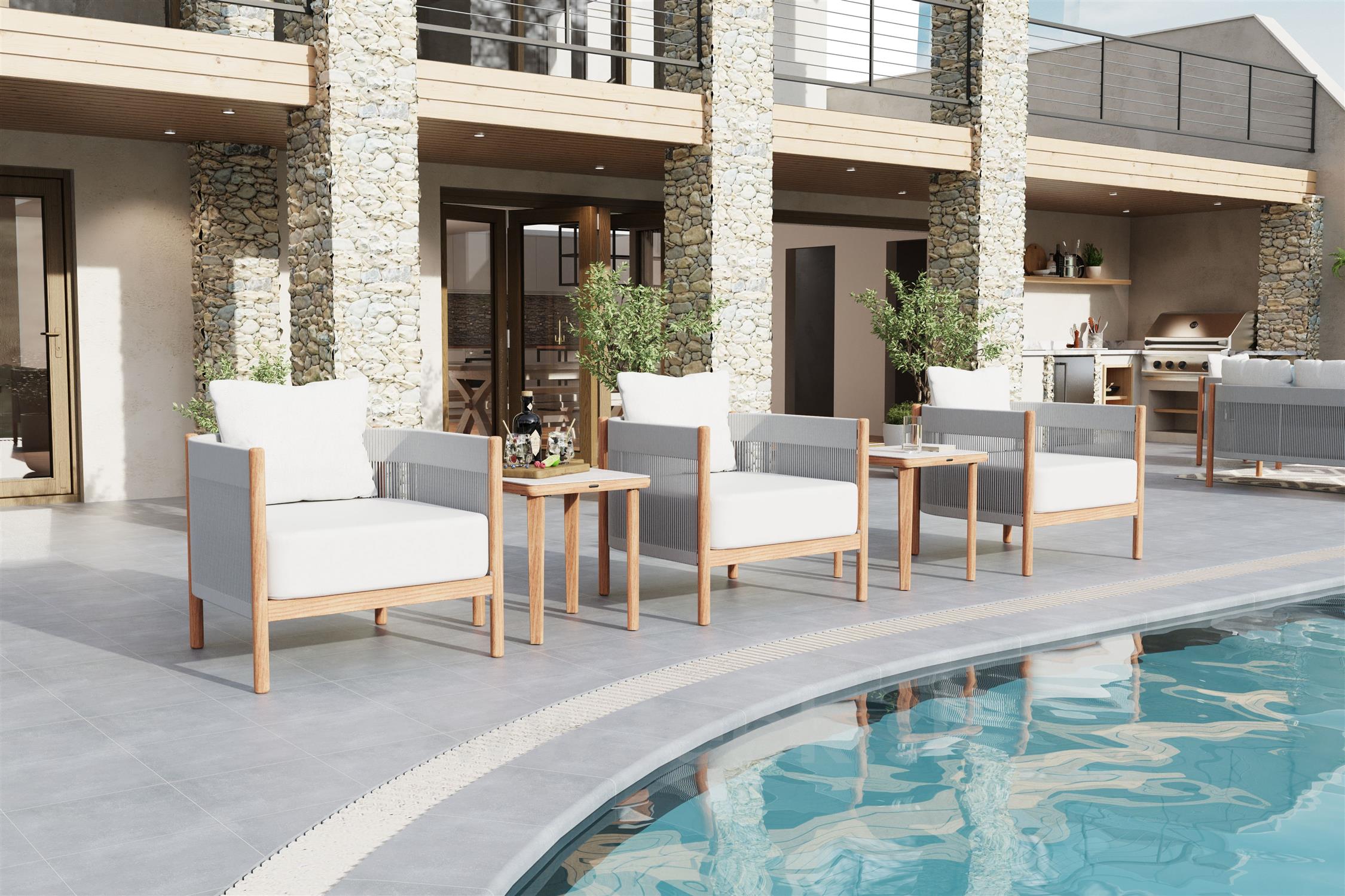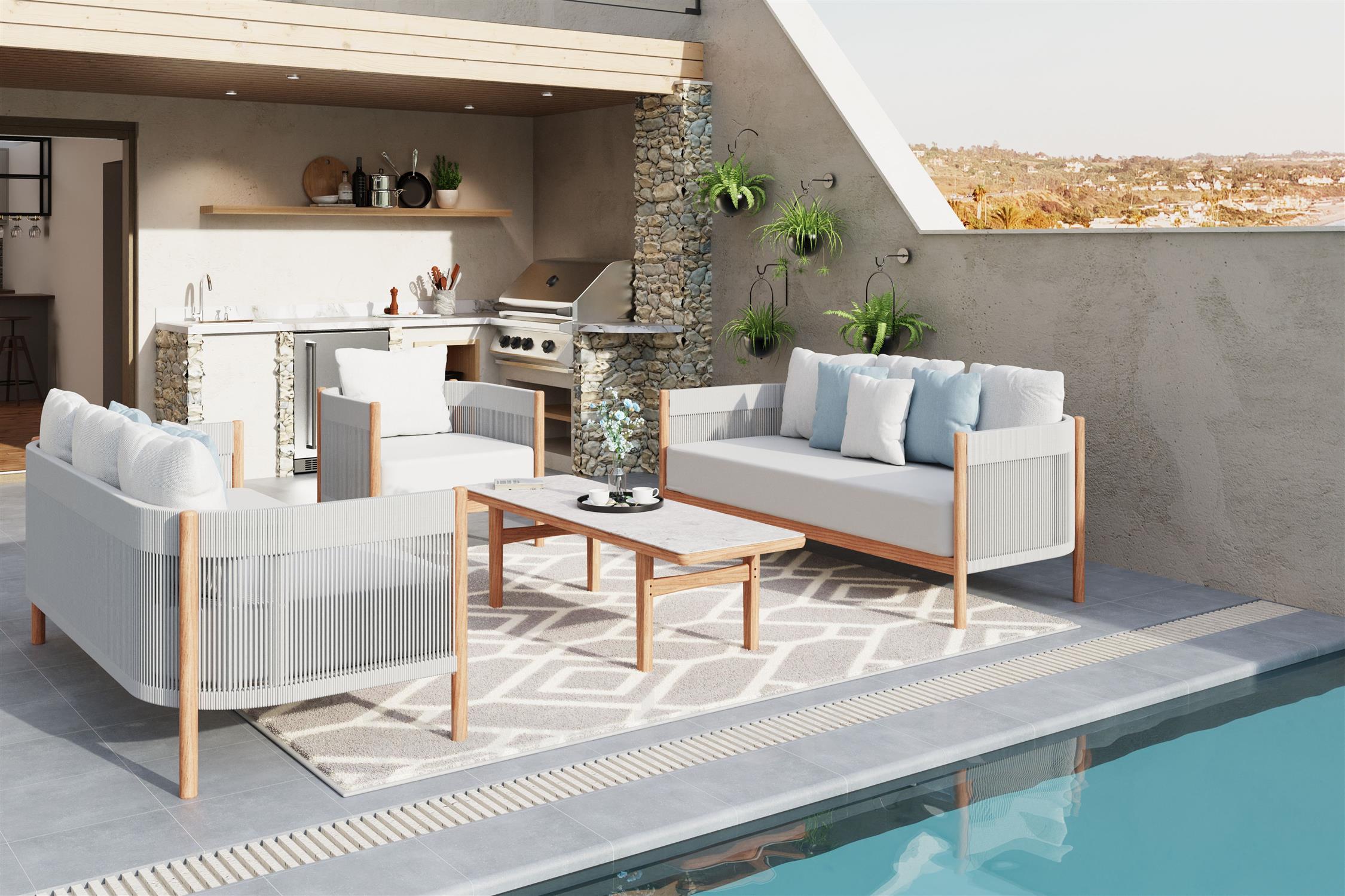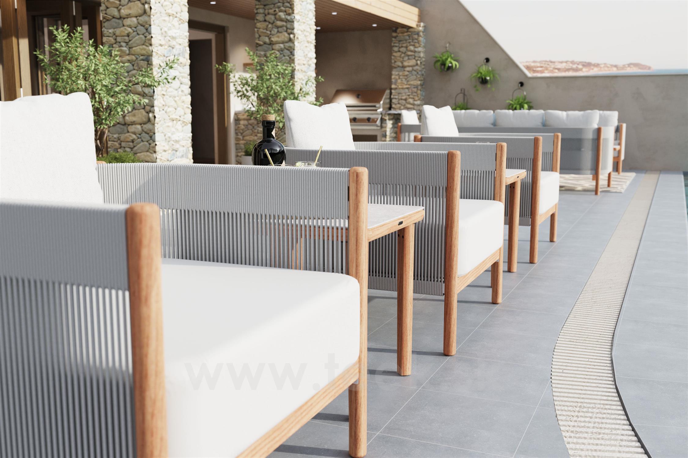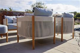 Kolekcia Cocoon od značky Barlow Tyrie predstavuje sofistikovaný exteriérový nábytok, ktorý spája moderný dizajn s vynikajúcim remeselným spracovaním. Nábytok z tejto kolekcie sa vyznačuje teakovým rámom, ktorý zaisťuje pevnosť a dlhú životnosť, a elegantným lankovým výpletom, ktorý dodáva nábytku ľahkosť a vzdušnosť. Prírodné teakové drevo prináša do exteriéru teplo a prirodzenú krásu, zatiaľ čo lankový výplet poskytuje pohodlie a oporu.