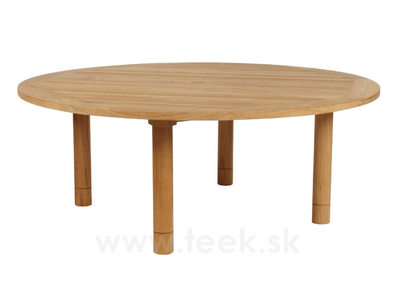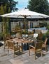 Záhradné jedálenské stoly Drummond od spoločnosti Barlow Tyrie. Konštrukcia záhradných stolov je vyrobená z masívneho teakového dreva.