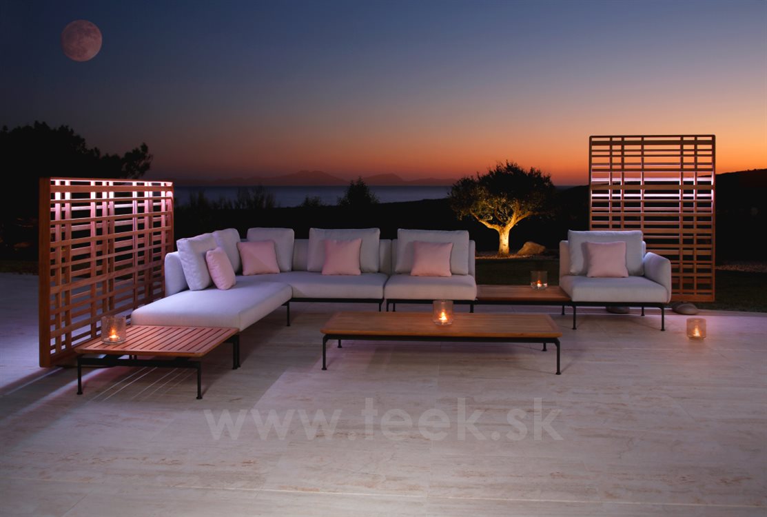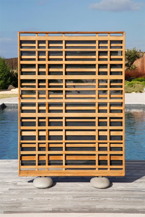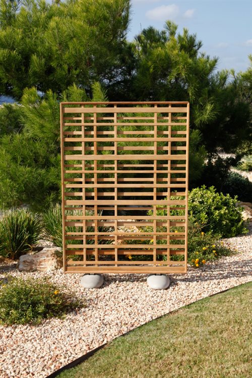 Lesné záhradné zásteny od spoločnosti Barlow Tyire. Konštrukcia je vyrobená z masívneho teakového dreva.