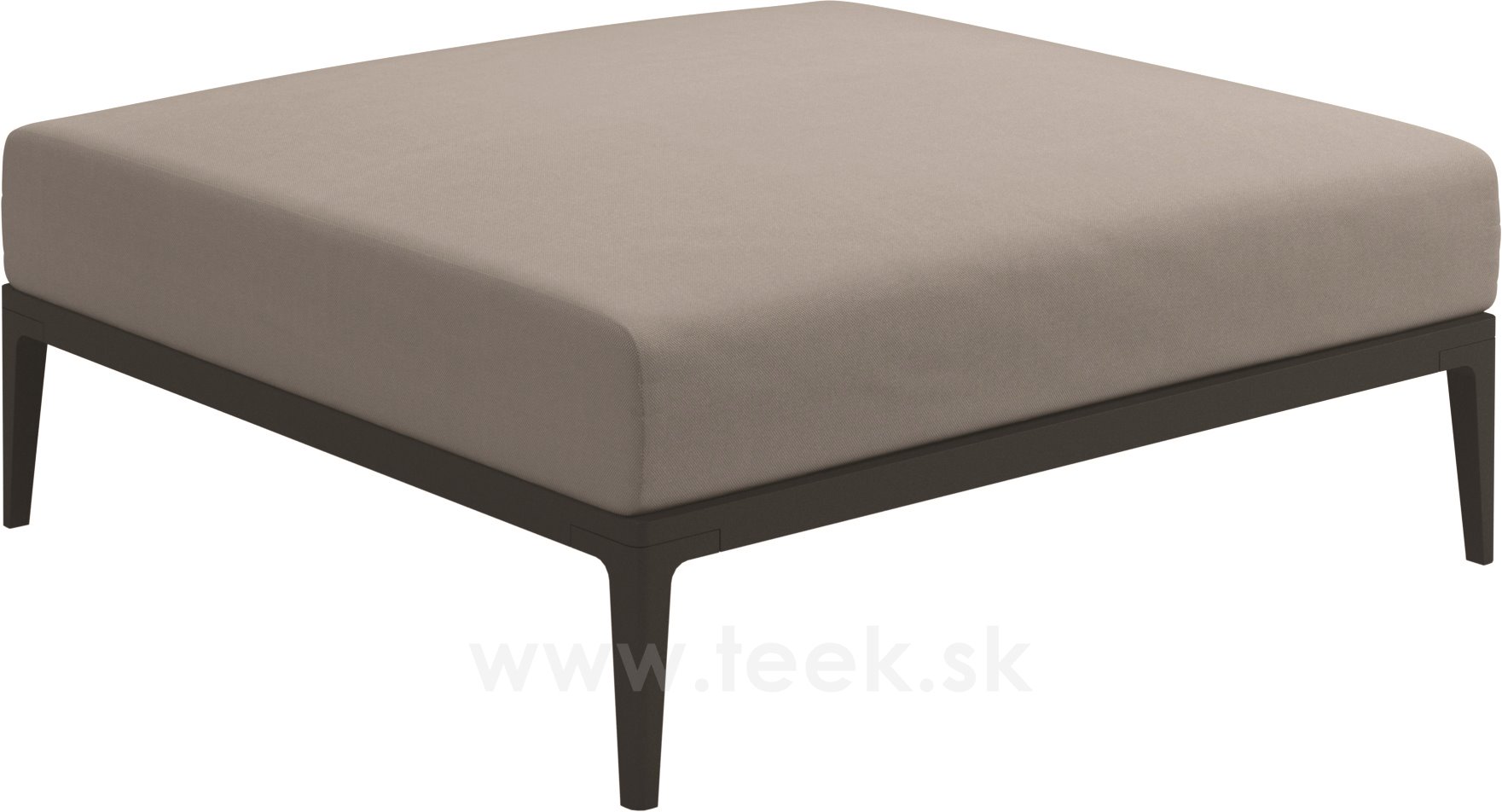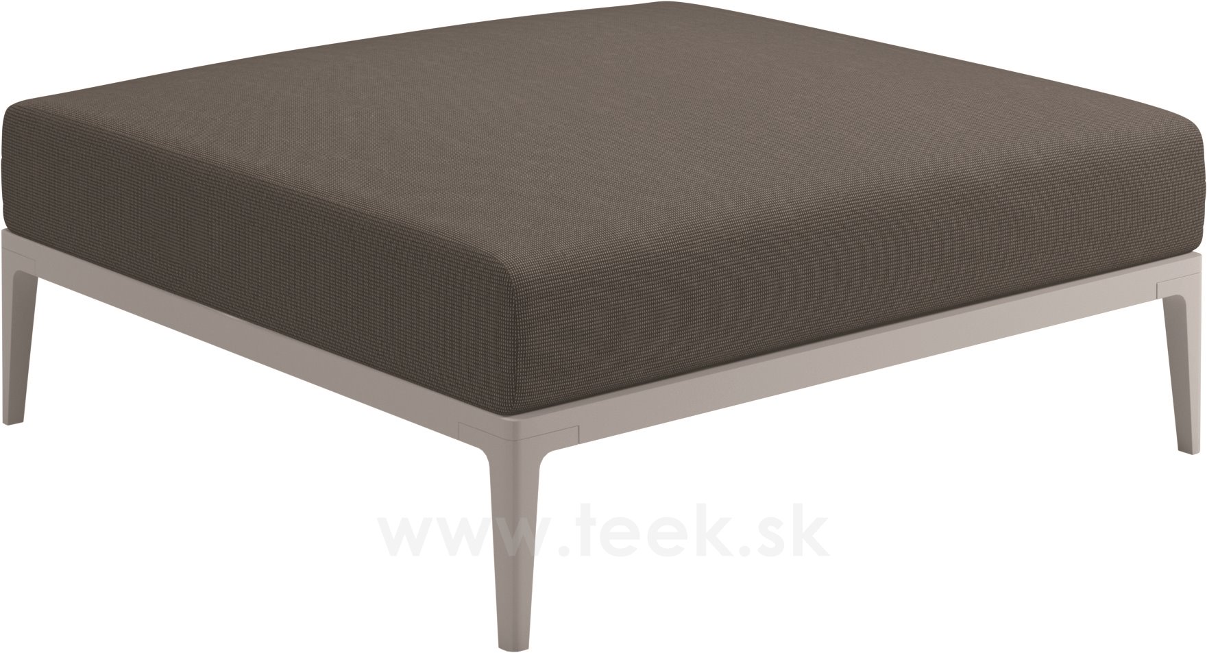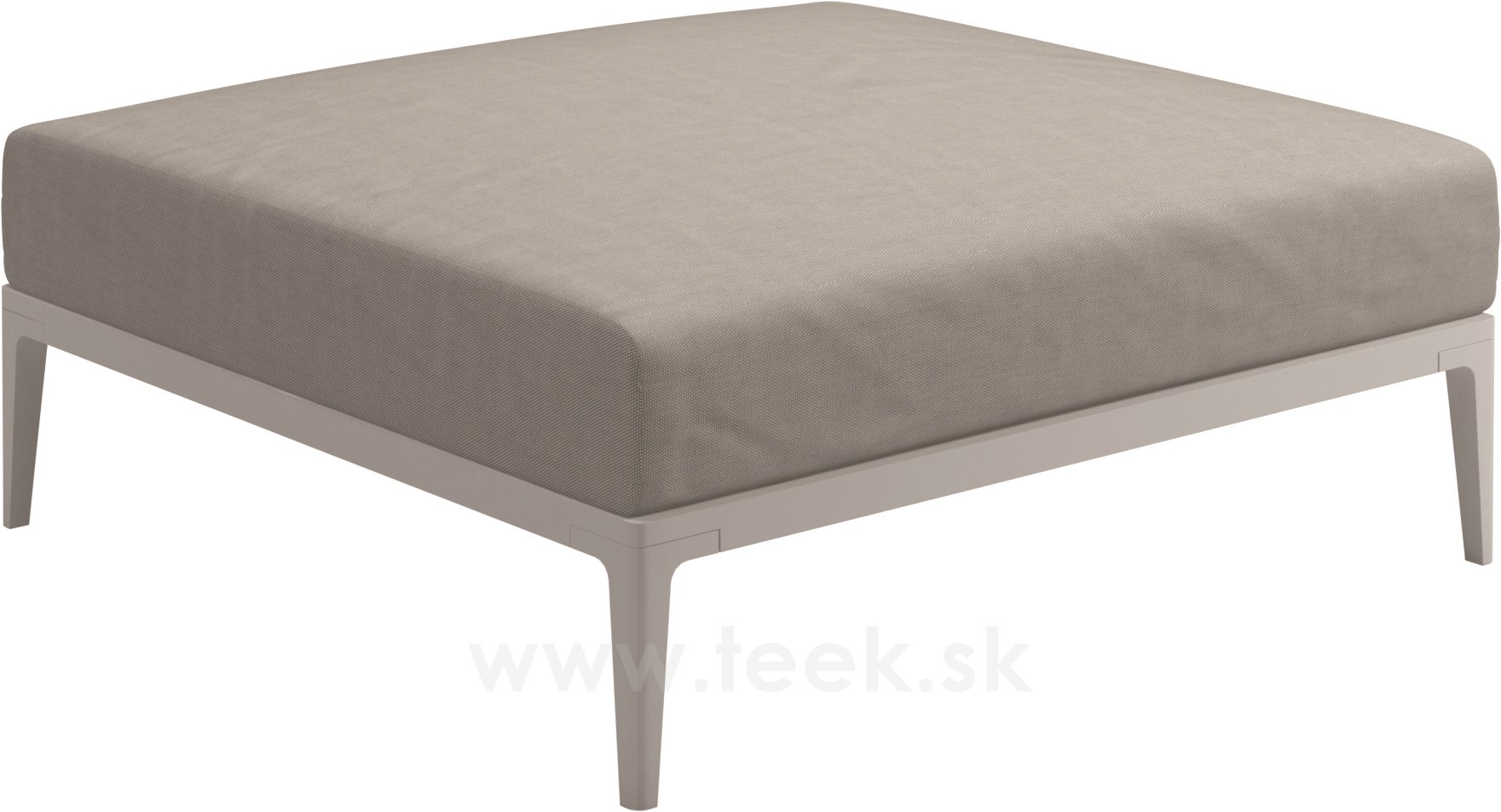 Záhradná podnožka Grid od spoločnosti Gloster. Podnožka má čalúnenie z kvalitných outdoorových textílií a rýchloschnúce polstrovanie na hliníkovom lakovanom ráme. Sedák je určený na trvalé používanie v exteriéri. Vyberte si zo širokej škály farieb látok. Rozmery: 103x103x40 cm.