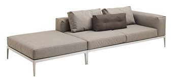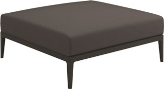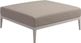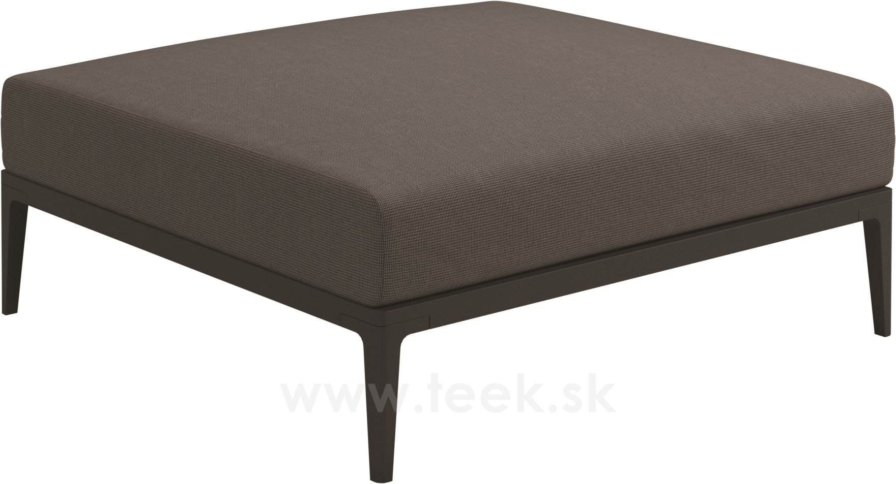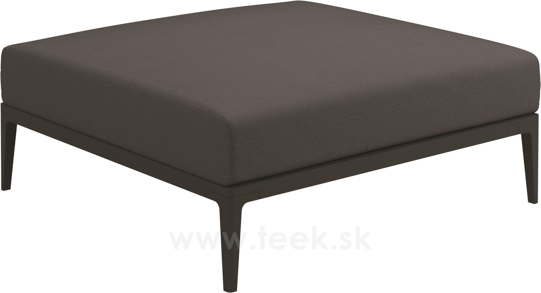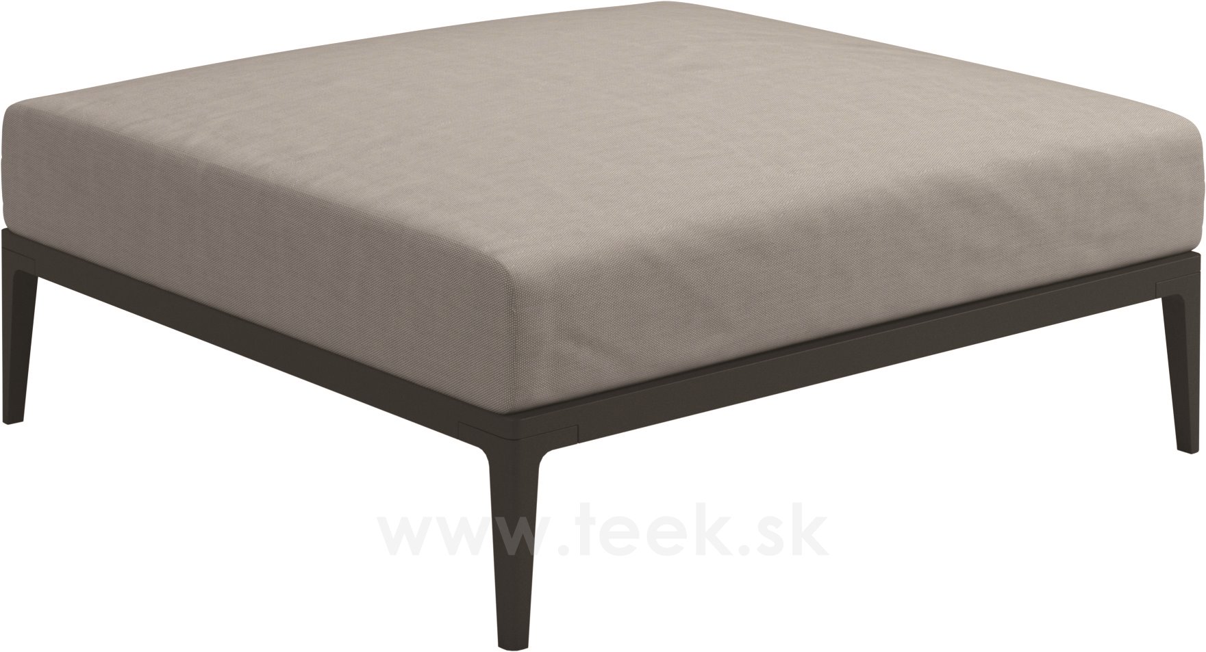 Záhradná podnožka Grid od spoločnosti Gloster. Podnožka má čalúnenie z kvalitných outdoorových textílií a rýchloschnúce polstrovanie na hliníkovom lakovanom ráme. Sedák je určený na trvalé používanie v exteriéri. Vyberte si zo širokej škály farieb látok. Rozmery: 103x103x40 cm.