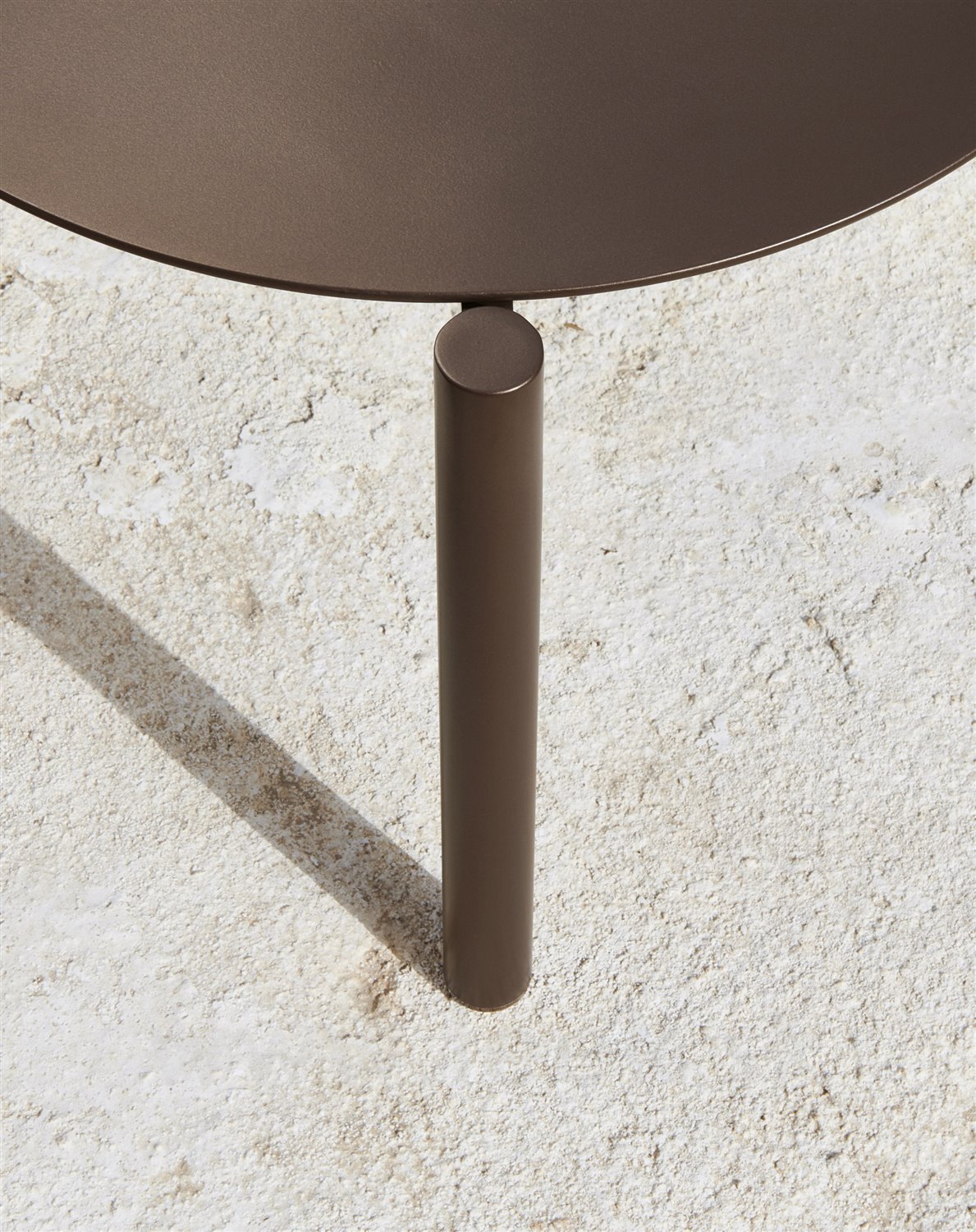 Stôl je celohliníkový. Povrch okrúhlej dosky má priemer 73 cm.