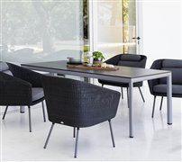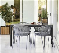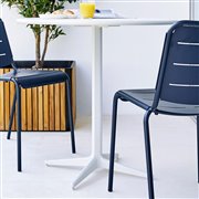 Jedálenské a barové stoly rôznych veľkostí, tvarov a farieb.