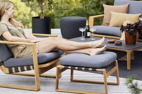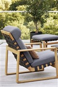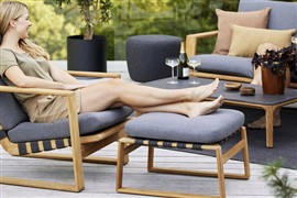 Kolekcia lounge nábytku z teakového dreva v kombinácii s lankovým výpletom.