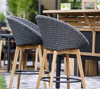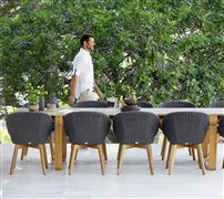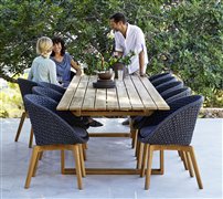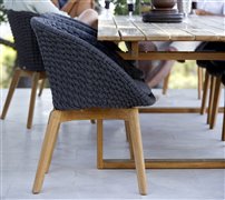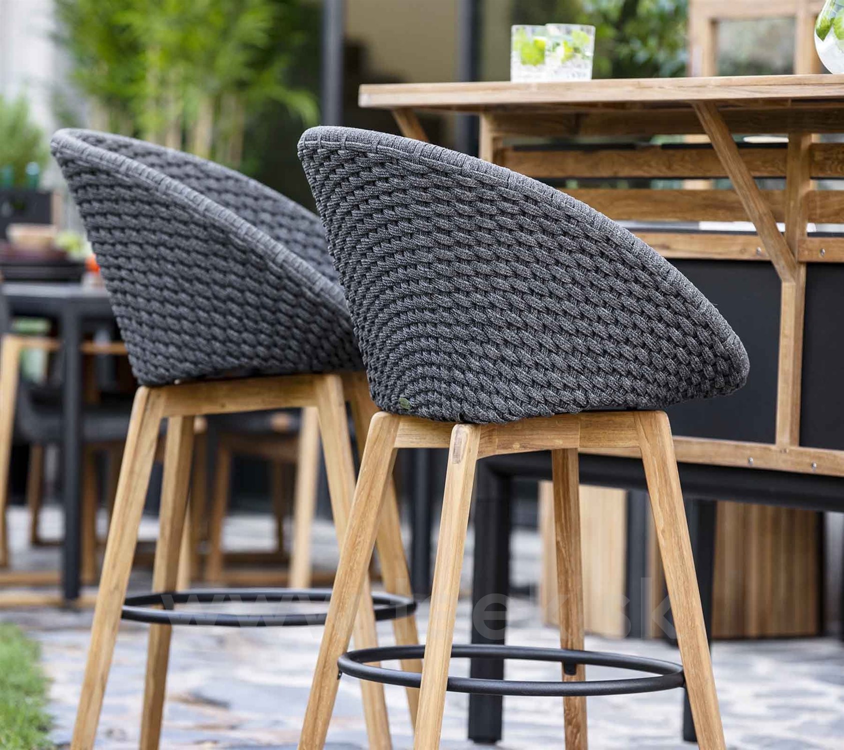 Kolekcia Peacock Rope Dining je moderný vonkajší nábytok, ktorý kombinuje teakové drevo a široký lanový výplet. Možno ju kombinovať s kolekciou záhradného nábytku
