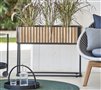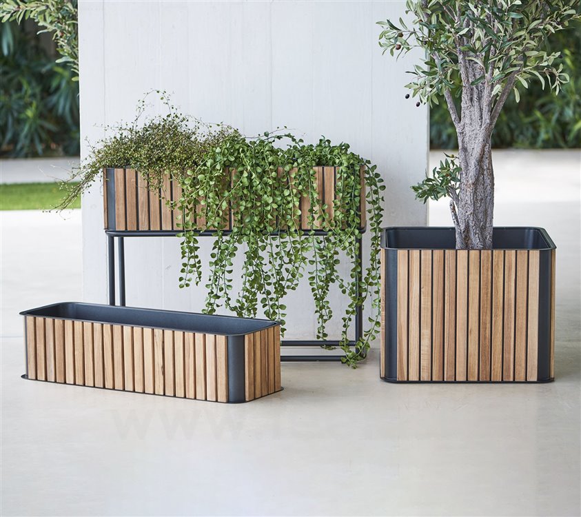 Kolekcia kvetináčov a úložných boxov na sedacie vankúše.