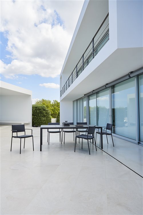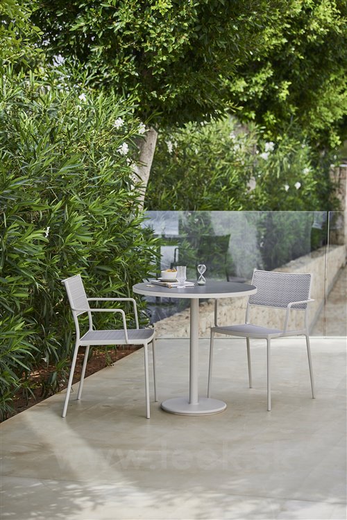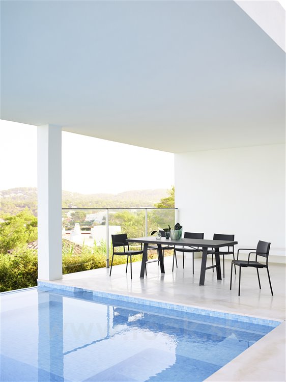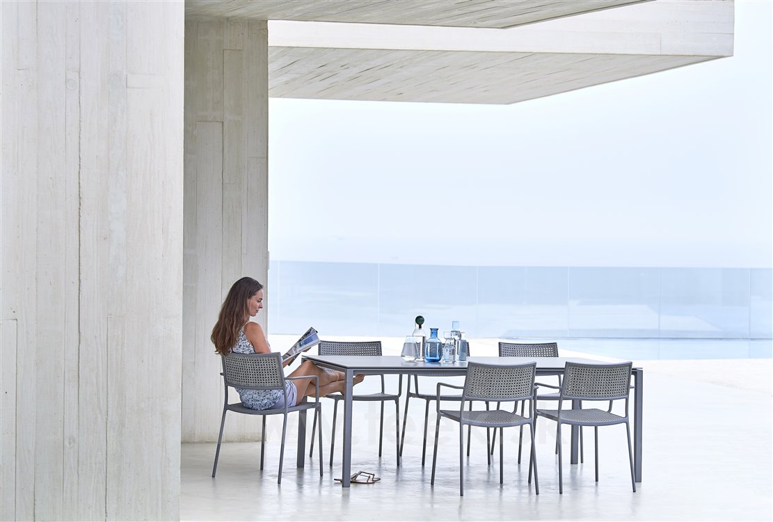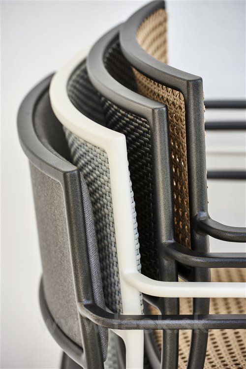 Kolekcia Less design zahŕňa záhradné stohovateľné jedálenské stoličky, ktoré sú vyrobené z hliníka alebo z kombinácie hliníka a umelého ratanu. Dizajnéri Foresom & Hiort-Lorenzen navrhli kolekciu v rôznych farbách.