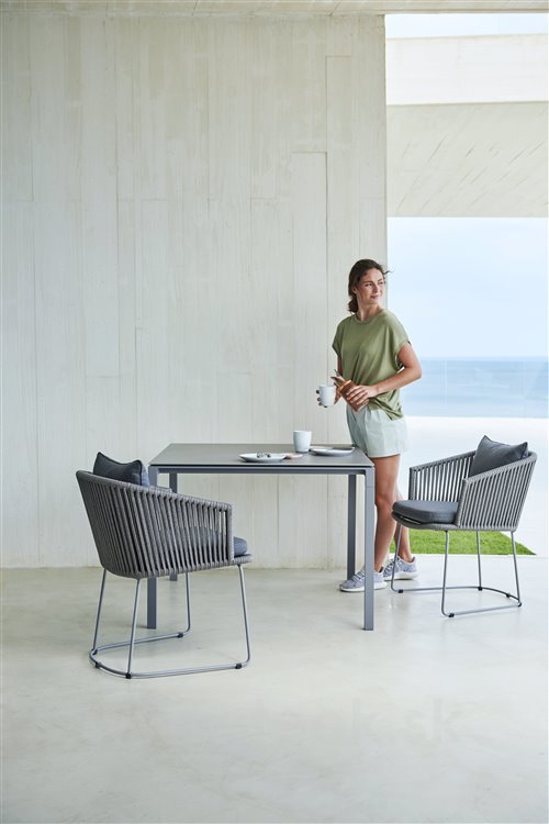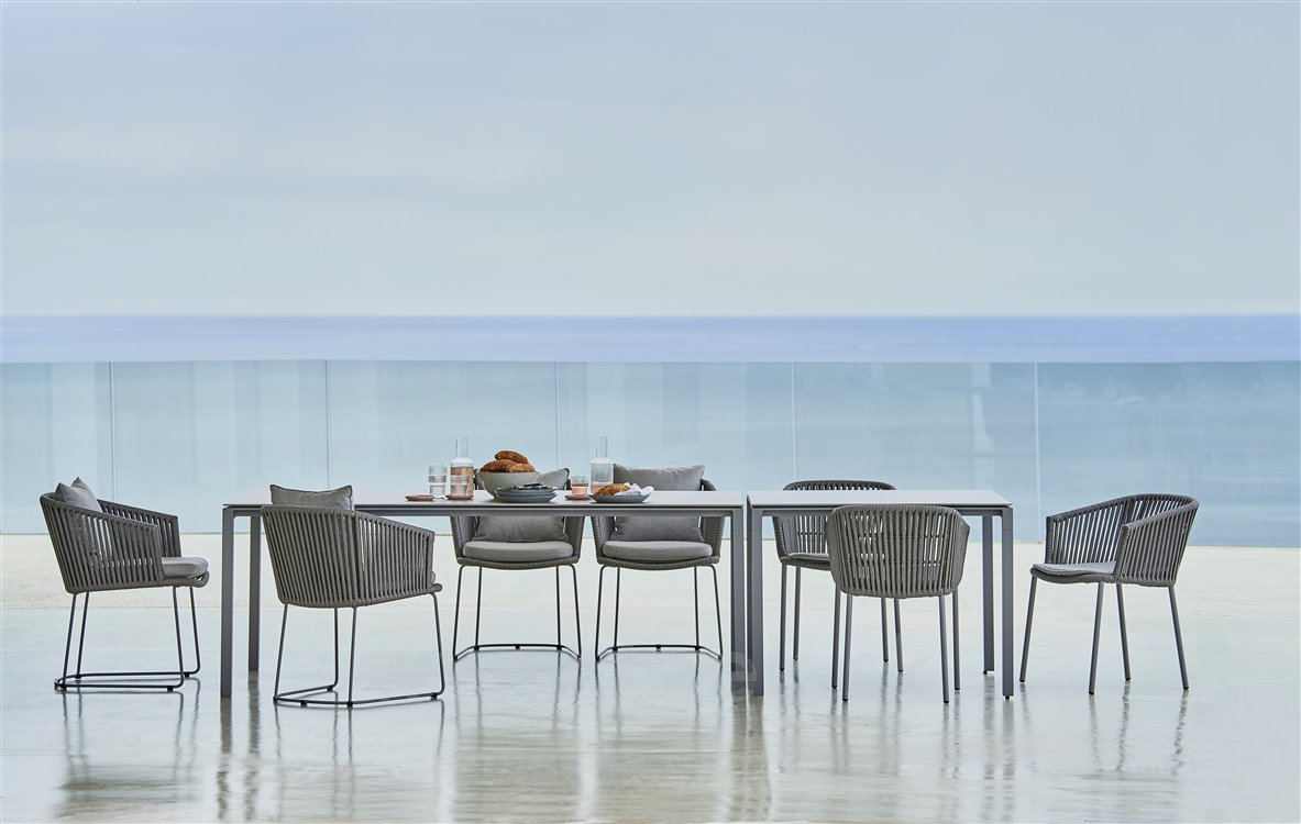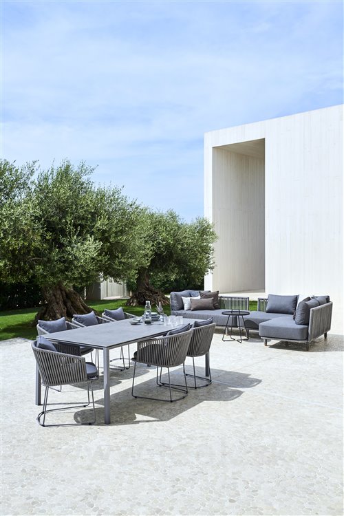 Kolekcia Moments Dining obsahuje záhradnú jedálenskú stoličku, záhradnú barovú stoličku a stohovateľnú záhradnú jedálenskú stoličku. Kolekcia Moments Dining má hliníkovú konštrukciu a káblový výplet. K záhradným jedálenským stoličkám je potrebné dokúpiť vankúš na sedenie, ktorý je vyrobený z kvalitnej vonkajšej látky Sunbrella. Jedálenský nábytok možno kombinovať so sedacím nábytkom