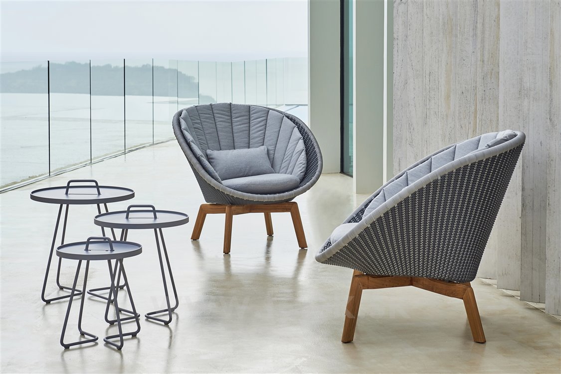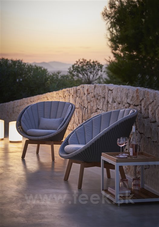 Kolekcia Peacock Lounge obsahuje nízke záhradné kreslo. Kreslo má hliníkový rám, ktorý je opletený umelým ratanom. Odporúčame kombinovať kolekciu Peacock Lounge so záhradným nábytkom