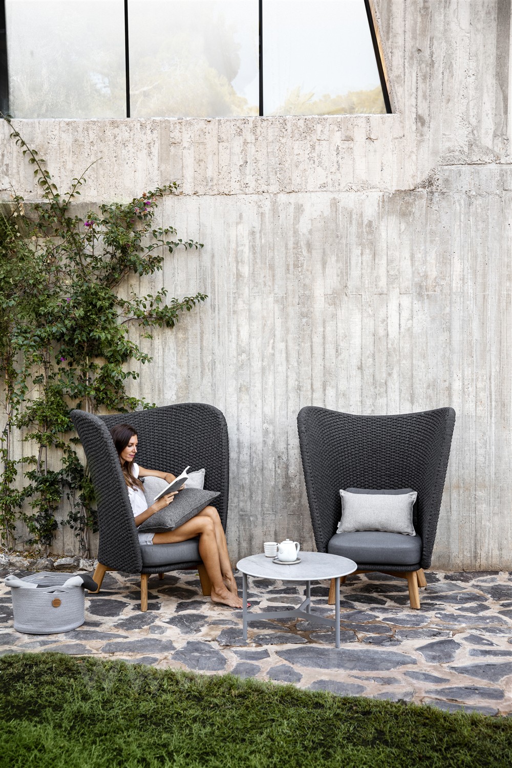 Peacock Lounge je obľúbená kolekcia vonkajších kresiel a pohoviek s lankovým výpletom. Odporúčame kombinovať s jedálenským nábytkom Peacock Rope Dining