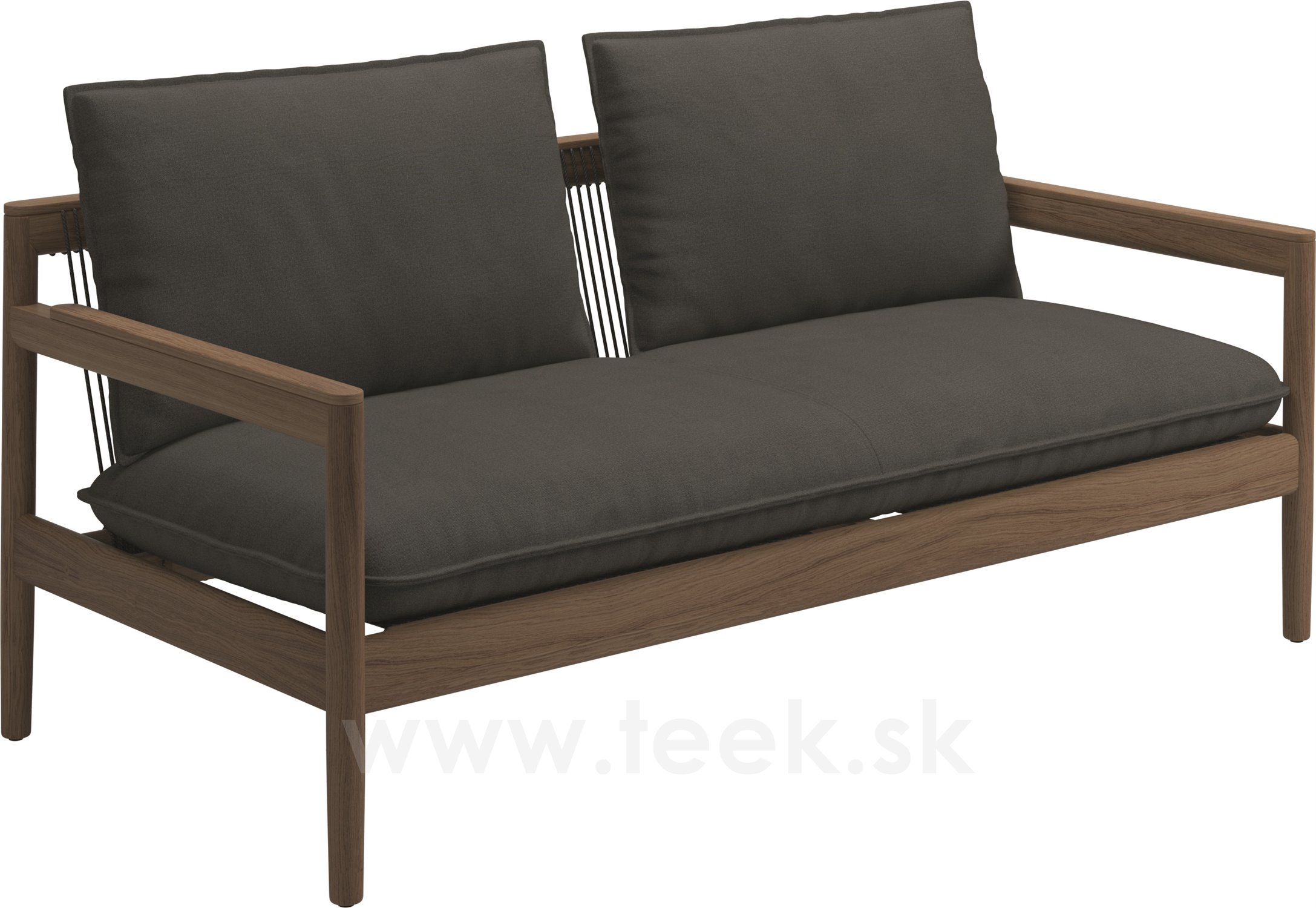 Teakové 2-místné sofa/pohovka Saranac, Gloster, 160x81x69 cm, rám teak, lankový výplet venkovní látka barva raven, sedáky kat. C barva dle vzorníku