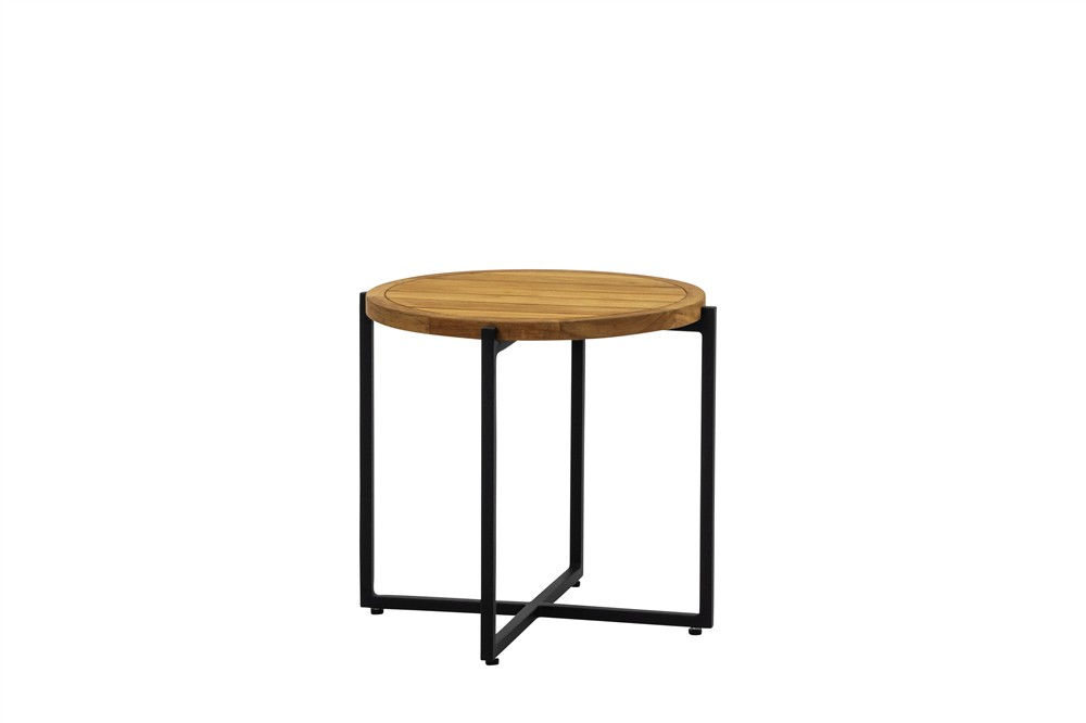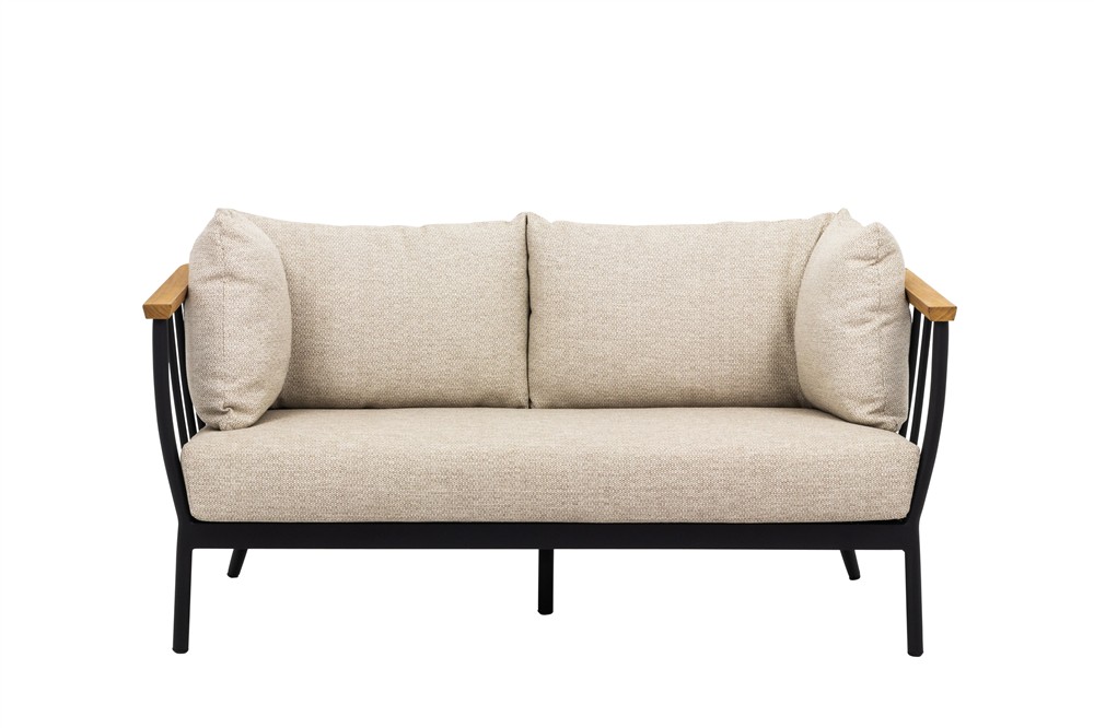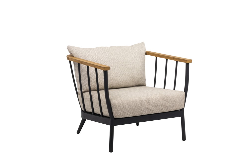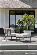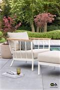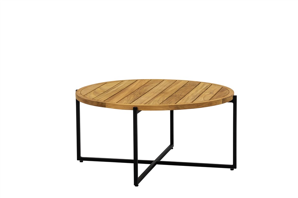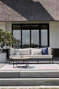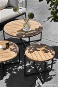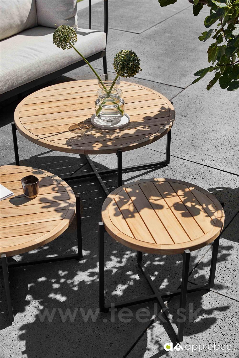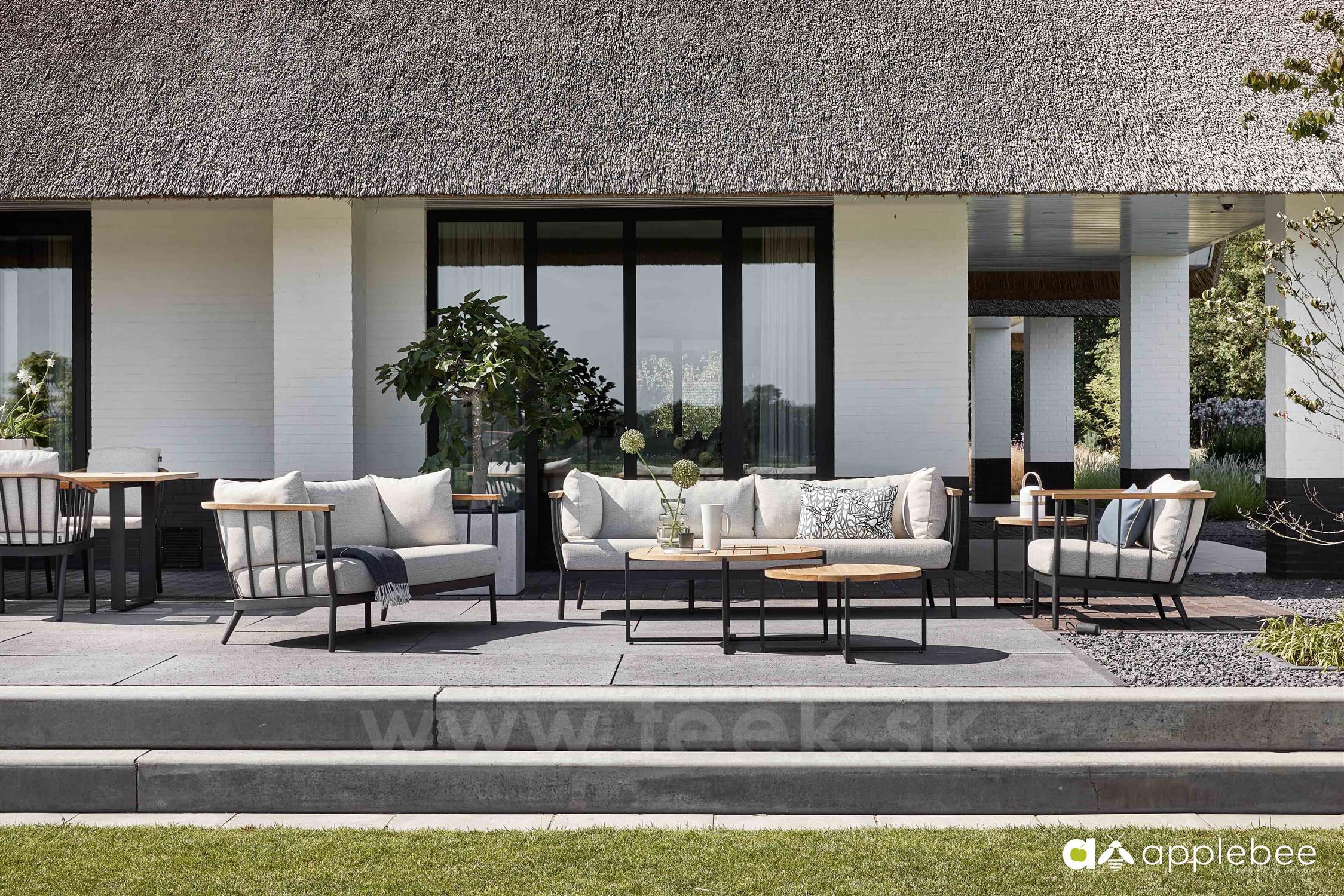 Štýlový vonkajší nábytok Condor od značky Apple Bee. Sedaciu zostavu z lakovaného hliníka a teakového dreva dopĺňajú konferenčné stolíky s teakovou doskou.