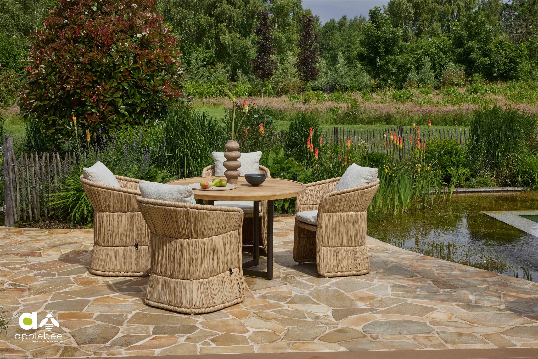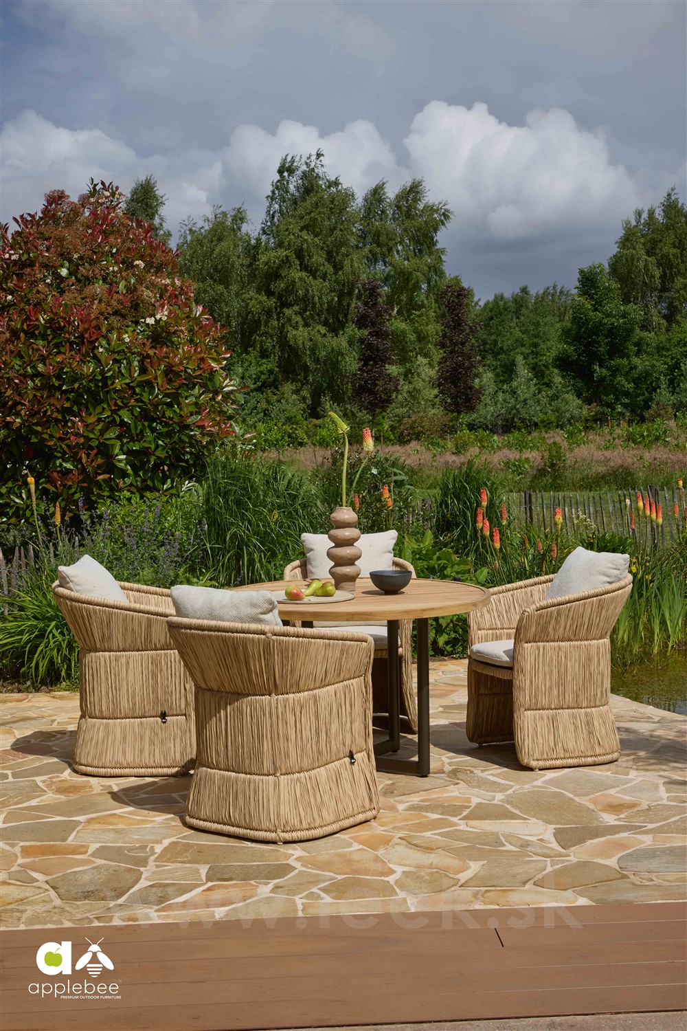 Štýlové vonkajšie jedálenské kreslá Gili od značky Apple Bee z umelého ratanu.