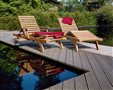 Zahradní lehátka Capri značky Barlow Tyrie. Konstrukce zahradních lehátek je z masivního teakového dřeva.