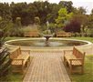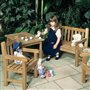 Zahradní lavice a křeslo Glanham značky Barlow Tyrie. Konstrukce zahradních lavic a křesel je z masivního teakového dřeva.