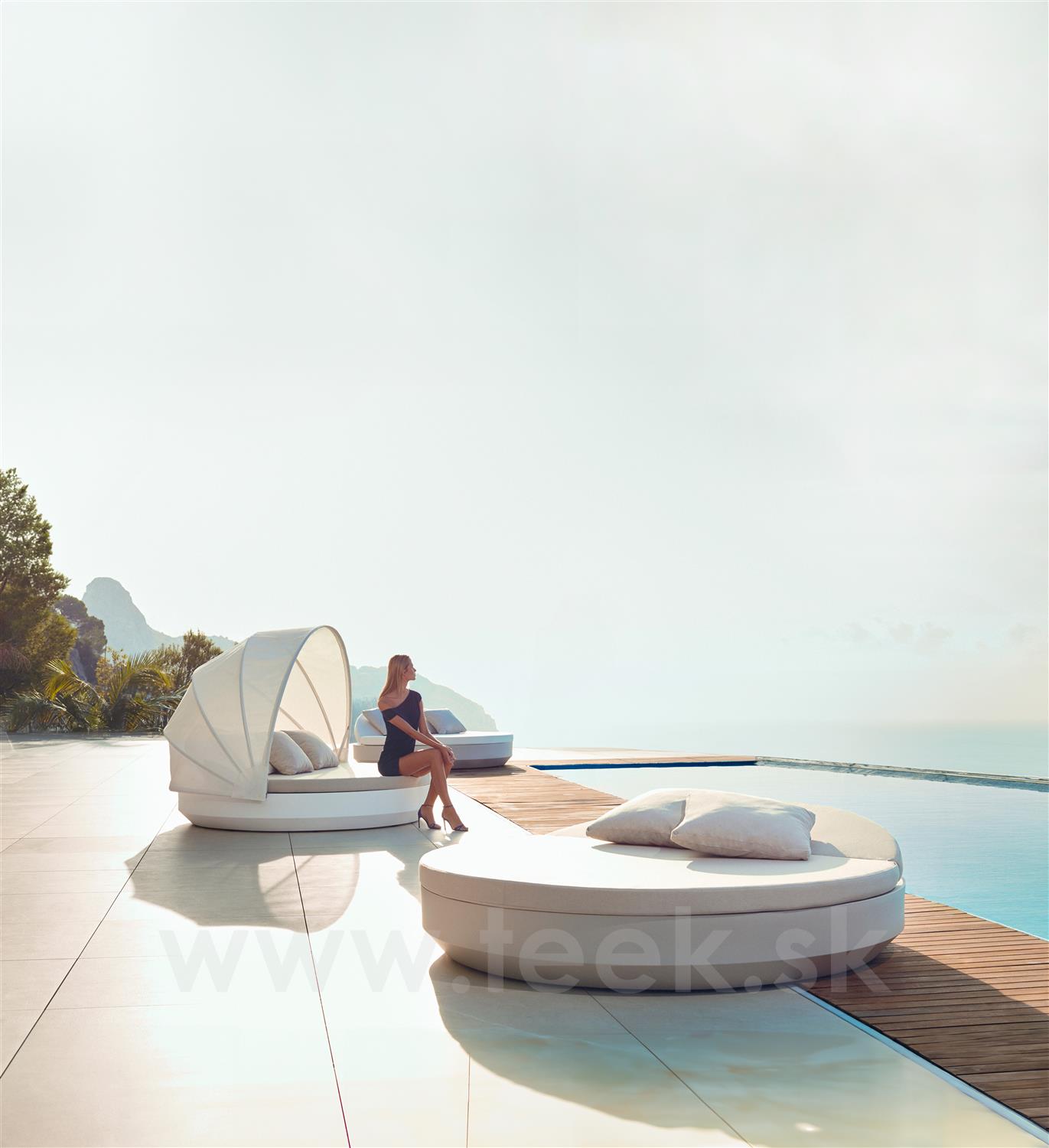 Round day bed with folding canopy and backrest Vela, Vondom, 222x216x156 cm, matt polyethylene, matt outdoor fabric Group 1A and 1B, colour according to the colour chart