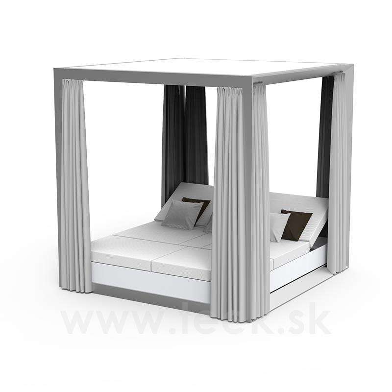 Denní postel s nebesy Vela, Vondom, 204x204x205 cm, 4 polohovatelné opěrky, rám hliník, závěsy a stříška venkovní látka Velum, barevné provedení dle vzorníku