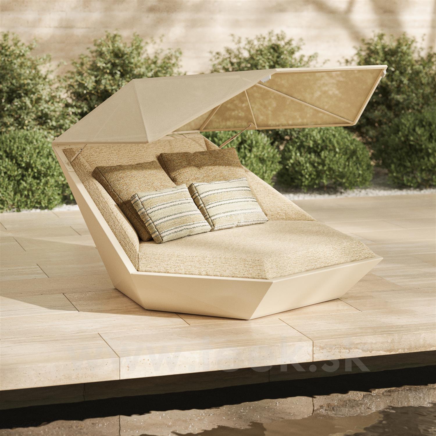 Day bed with folding canopy Faz, Vondom, 180x180x90 cm, matt polyethylene, matt outdoor fabric mattress Group 1A and 1B, colour according to the pattern book