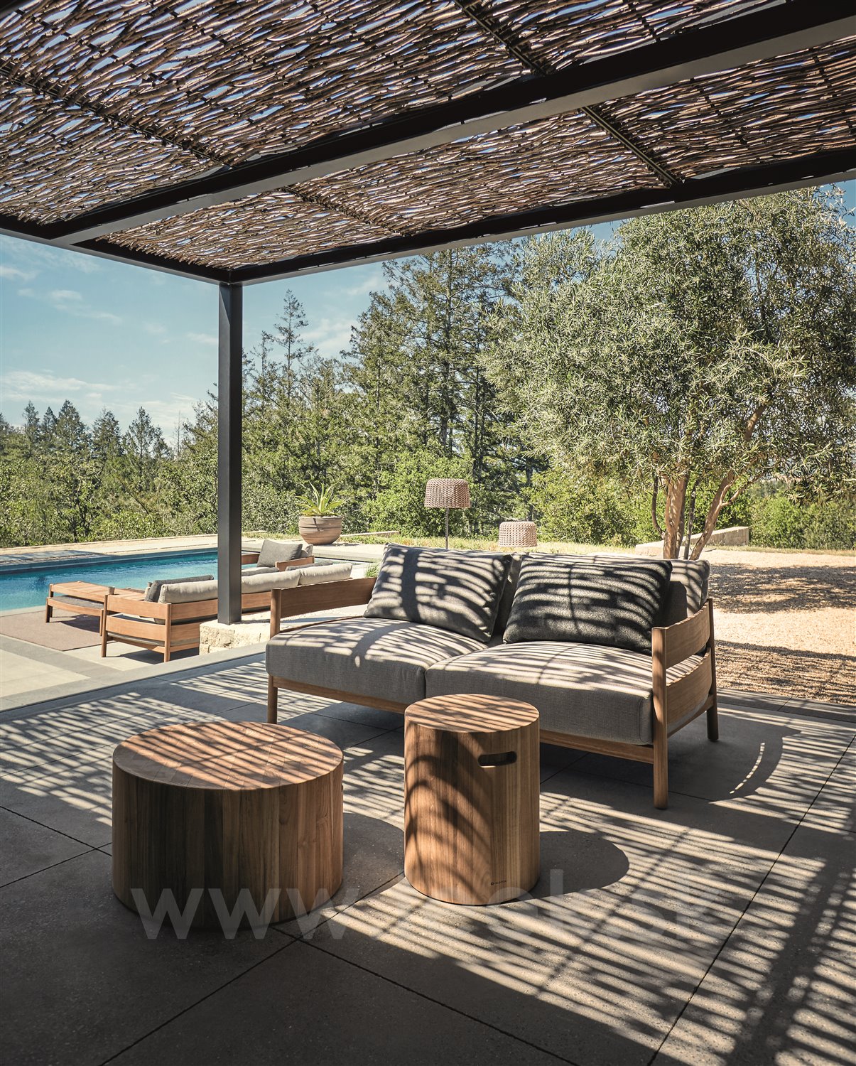 Designed in a nautical style, the Haven collection combines solid teak wood frames with deep and luxurious seat cushions and back cushions. Decent rounded backrests and armrests are designed to create a warm and comfortable environment for relaxation.