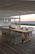 The Malibu garden dining chair by Manutti is made of artificial rattan and has a very airy design.