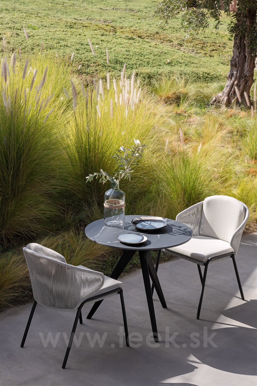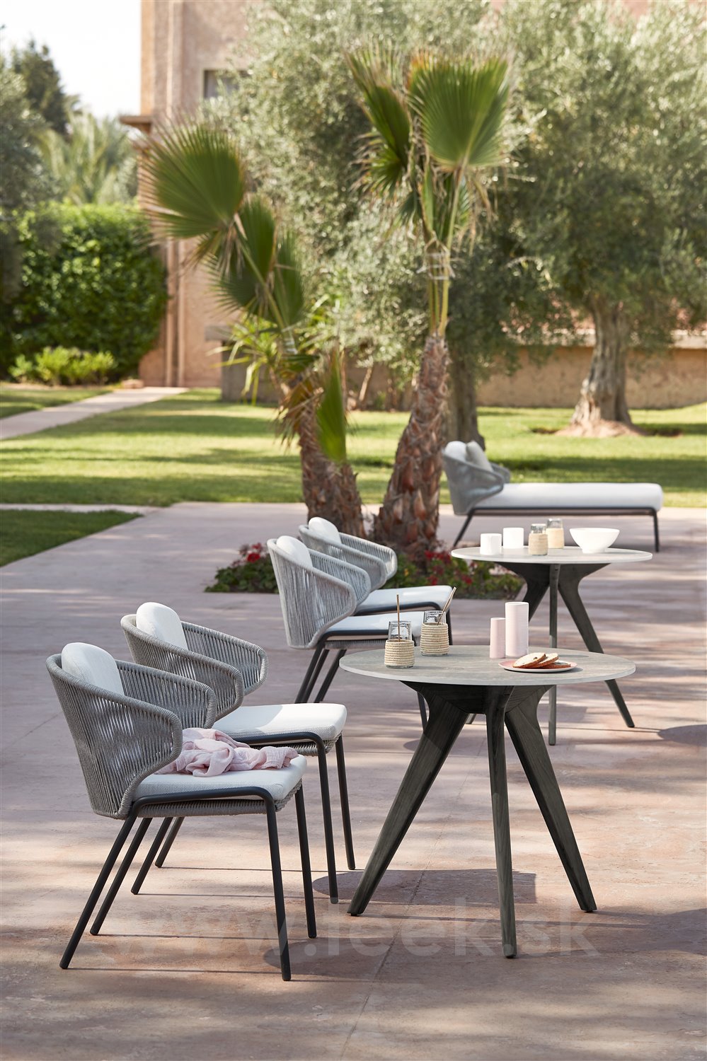 Zahradní křeslo lze kombinovat s relaxačním nábytkem Radoc Relax nebo sedacím nábytkem Radoc Lounge ze stejné kolekce.
