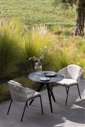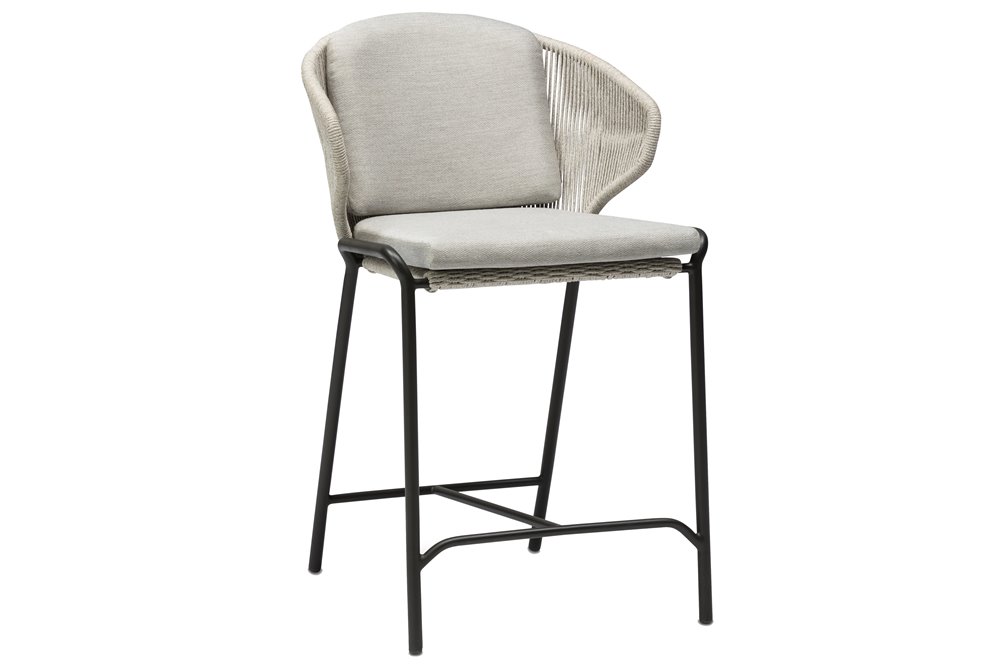 Designové zahradní křeslo a barová křesla Radoc (Radius) značky Manutti. Rám je z lakované nerezové oceli a výplet je lankový.