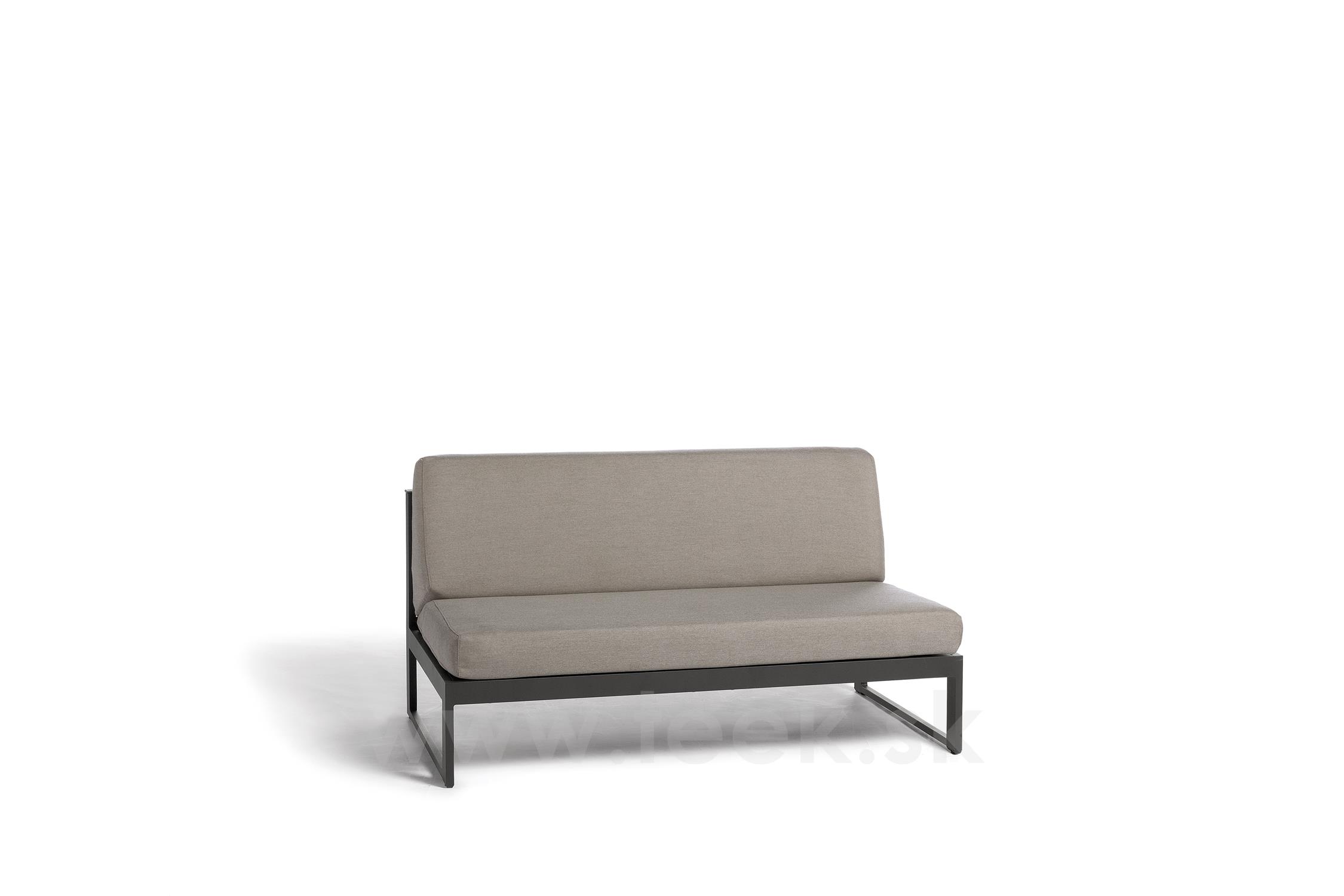 Hliníkový modulárny stredový diel 144 cm Landscape Teak, Diphano, 144x80x78 cm, hliníkový rám sivočierny (láva) a teak, čalúnenie z vonkajšej tkaniny hnedé (melé)