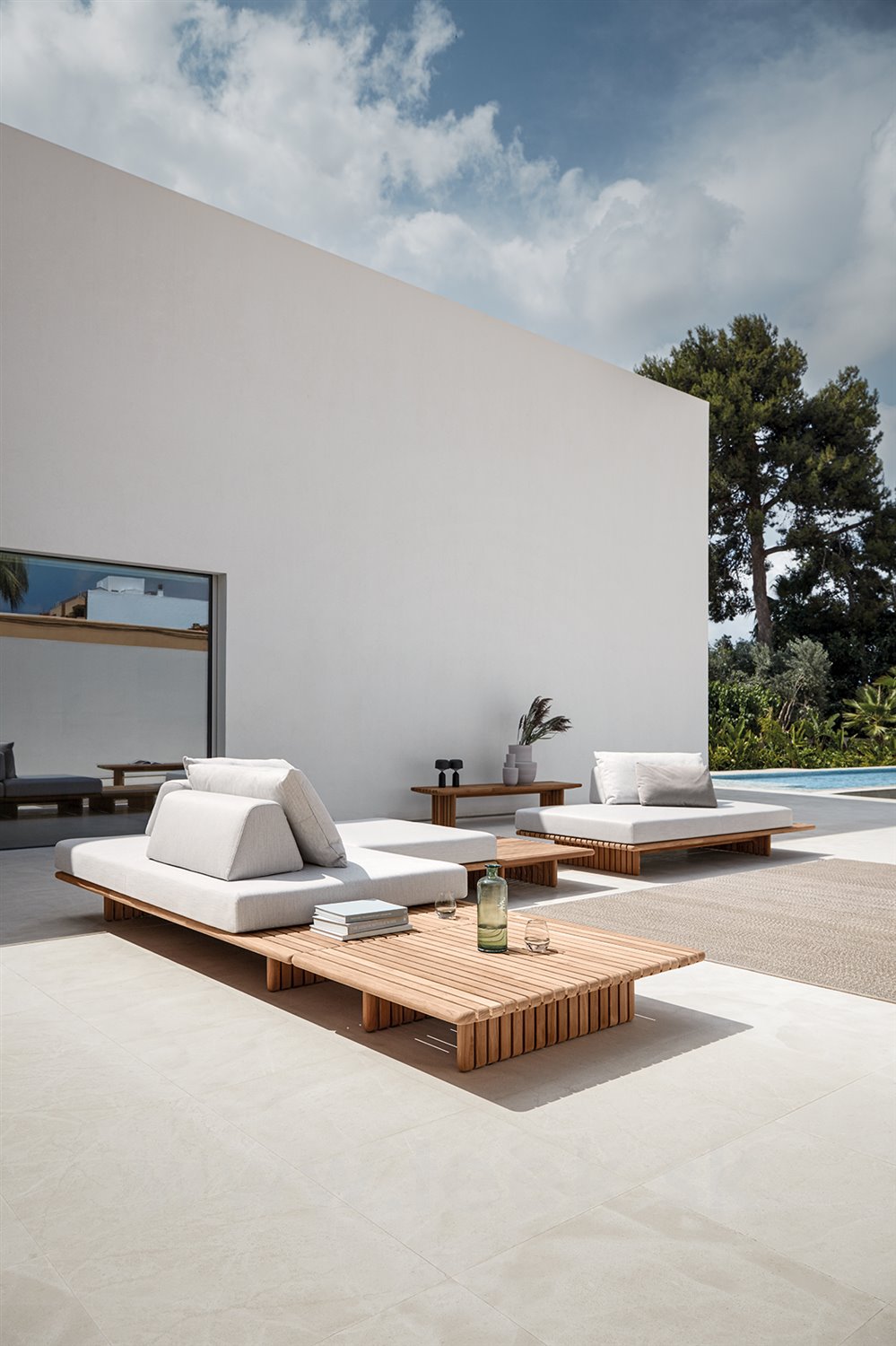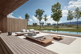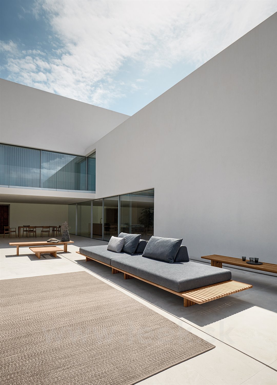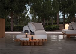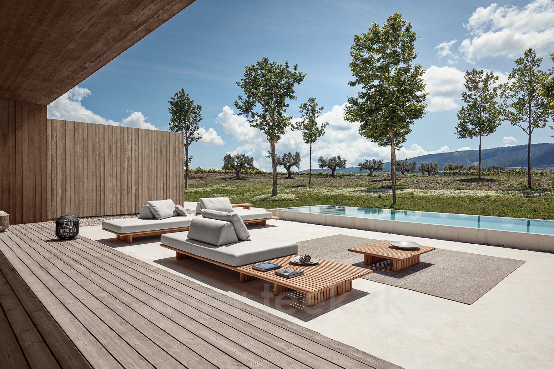 Modulový díl s odkládací plochou Deck, Gloster, teak, venkovní látka