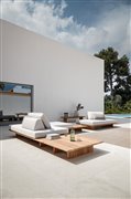 Modulový díl s odkládacím stolkem Deck, Gloster, 261x125x99 cm, rám teak, včetně sedáku, setu opěrných polštářů a krycí plachty, venkovní látka kat. C