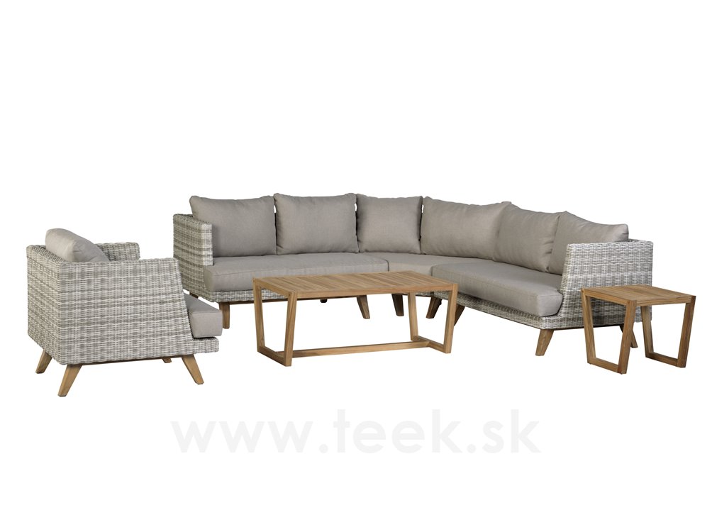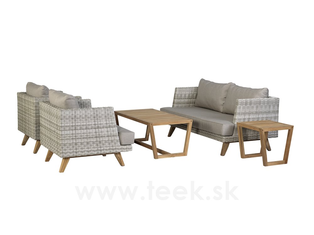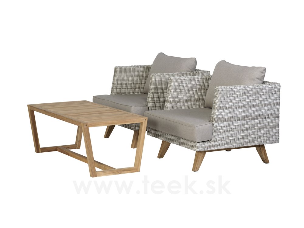 Ratanové nízké křeslo Arosa, Persoon, umělý ratan bílo-šedý, teakové nohy, vč.sedáku