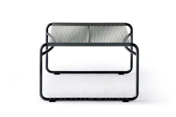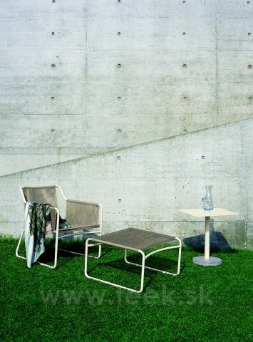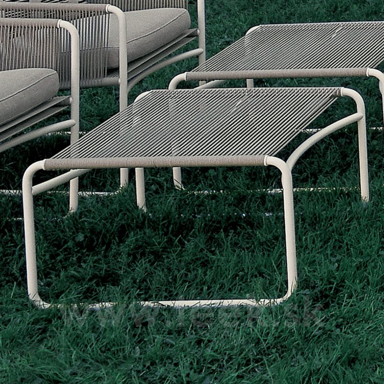 Stainless steel Harp footstool by Roda. The construction of the garden footstool is made of painted stainless steel and cable weave. The garden footstool is available in several colors.