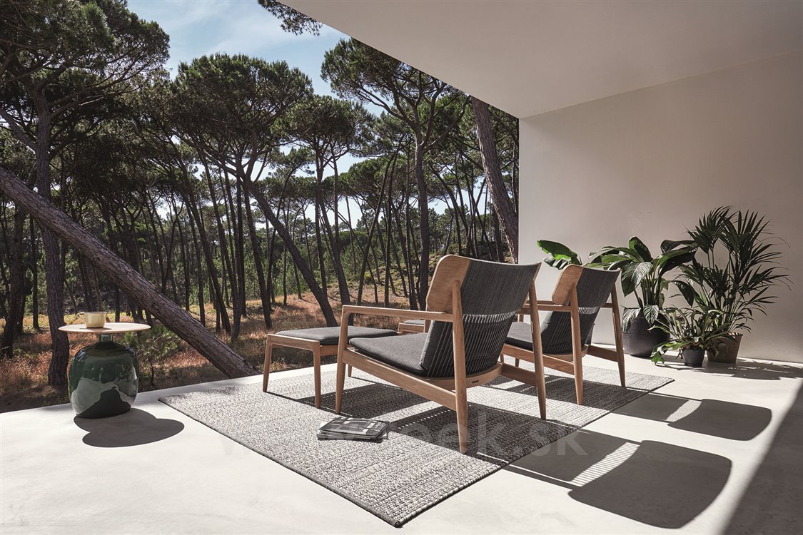 Součástí křesla je sedák z venkovní látky v barvě Fife Granite.