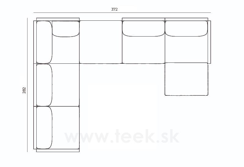 1x Rohový díl pravostranný, rozměr 96x96x77 cm