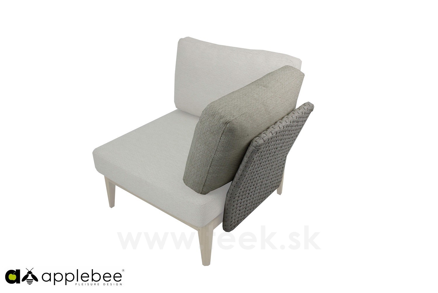 Rohový díl Lisa, Apple Bee, 81x81x66 cm, rám teak natural, výplet lanko Natural Oak, sedáky venkovní látka Olefin Natural Oak