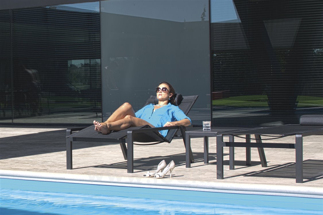Kolekce zahradního lehátka na opalování či k bazénu a relaxačního křesla s podnožkou Alura značky Royal Botania. Kolekce kombinuje hliník s Batylinem. Kolekce obsahuje stohovatelné zahradní lehátko, stohovatelné relaxační křeslo a stohovatelnou podnožku.