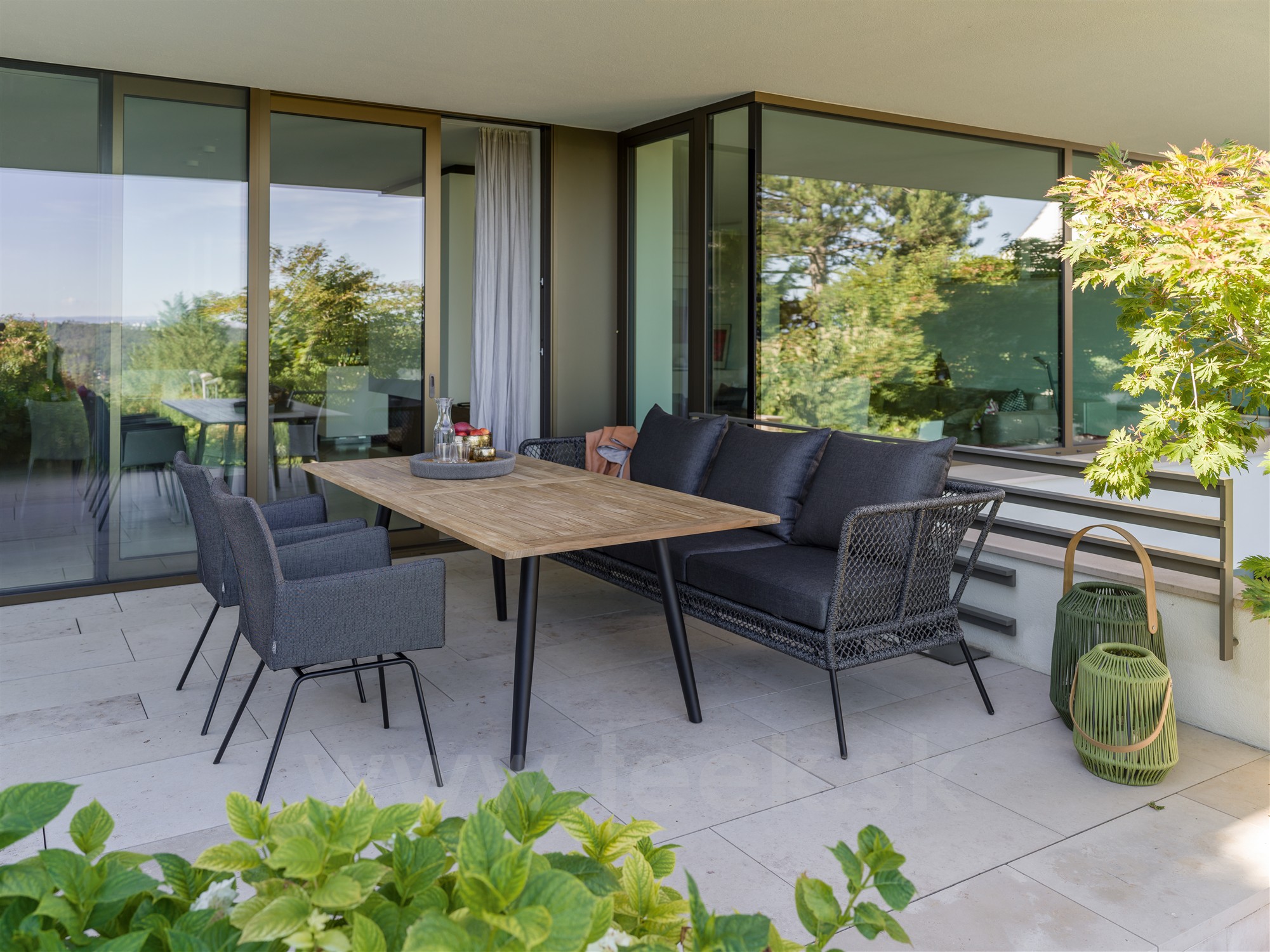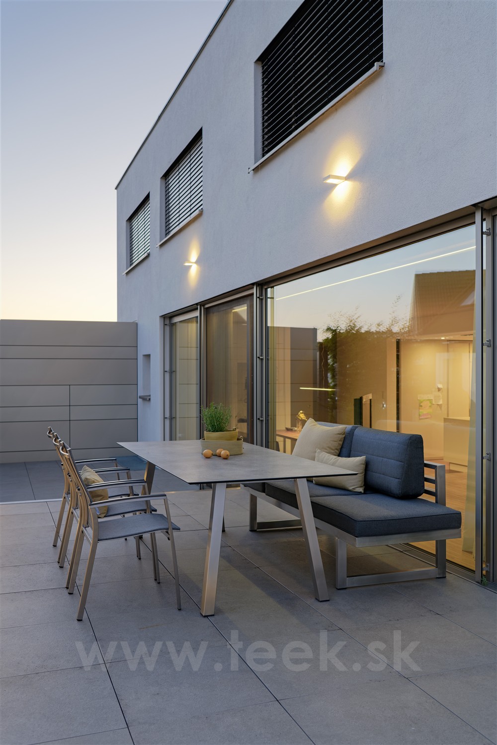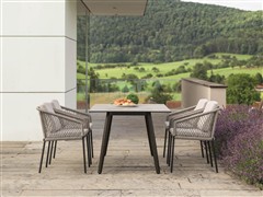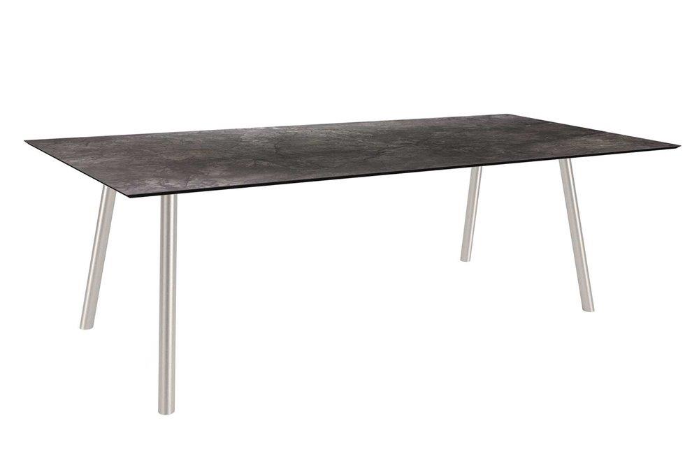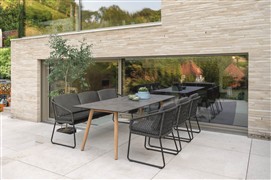 Interno jsou variabilní, moderní venkovní jídelní stoly na zahradu nebo terasu s podnoží z volitelného materiálu a barvy, desky jsou k dispozici z různých materiálů a barev včetně přírodního teaku.